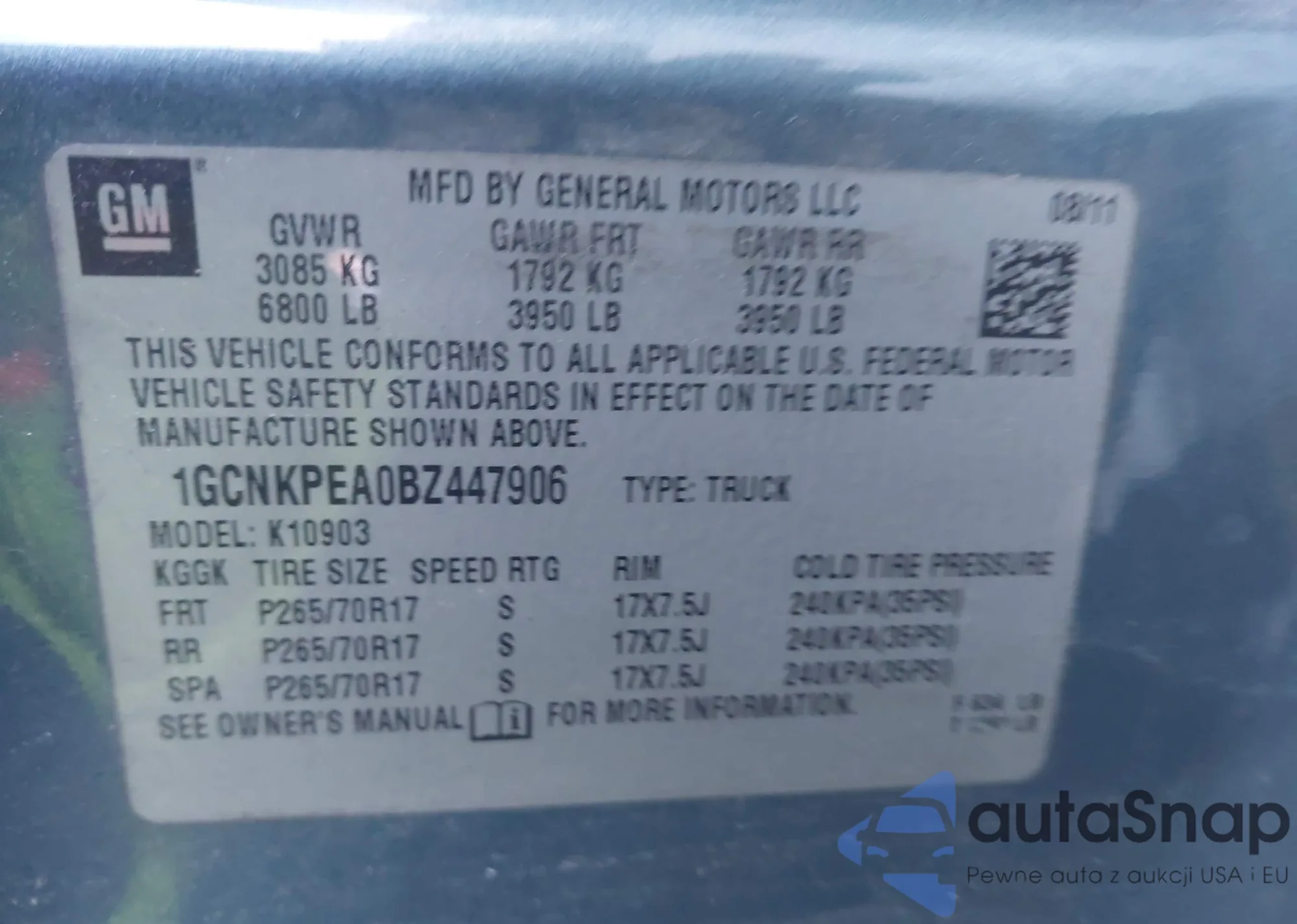 VIN: 1GCNKPEA0BZ447906
