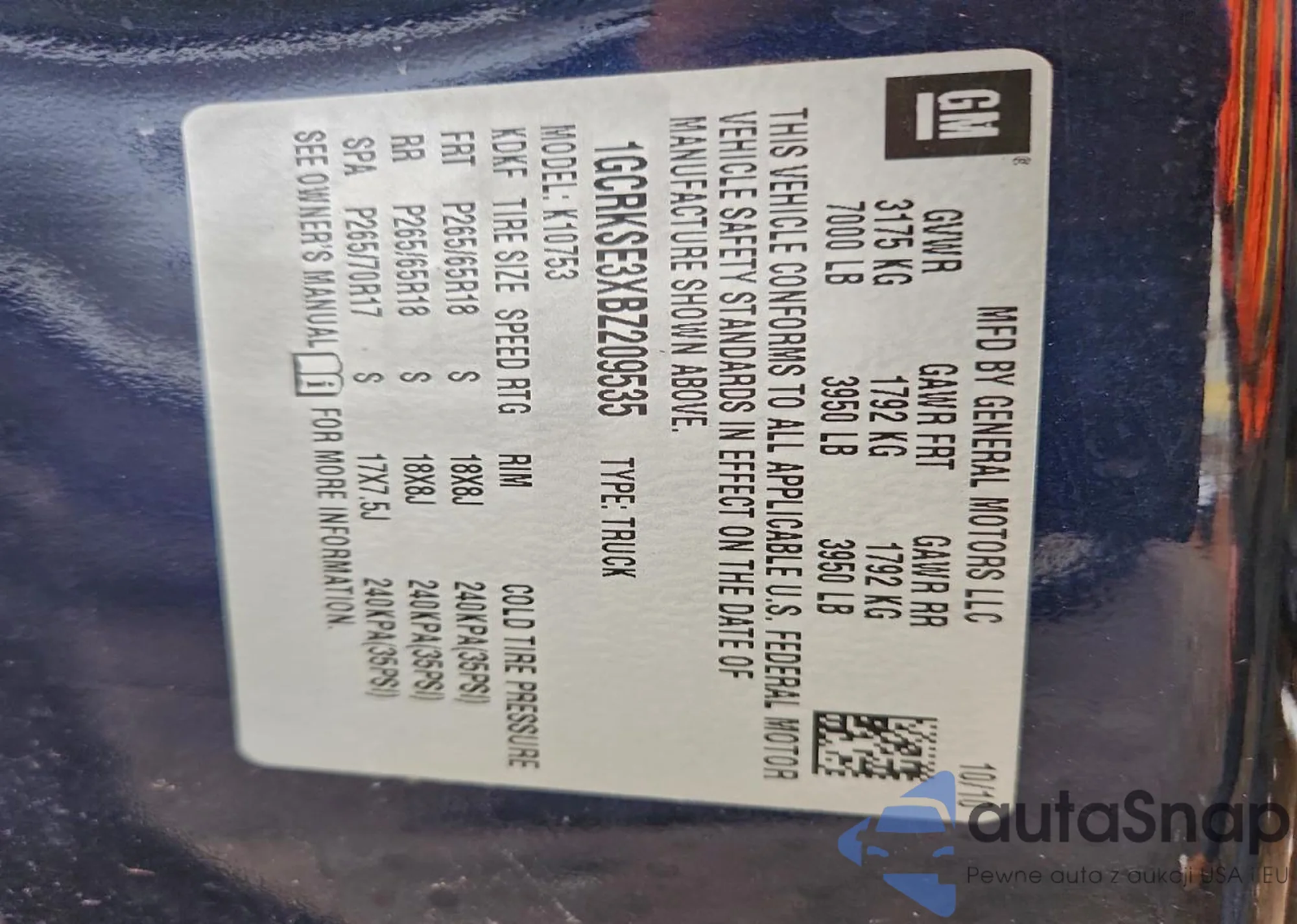 VIN: 1GCRKSE3XBZ209535