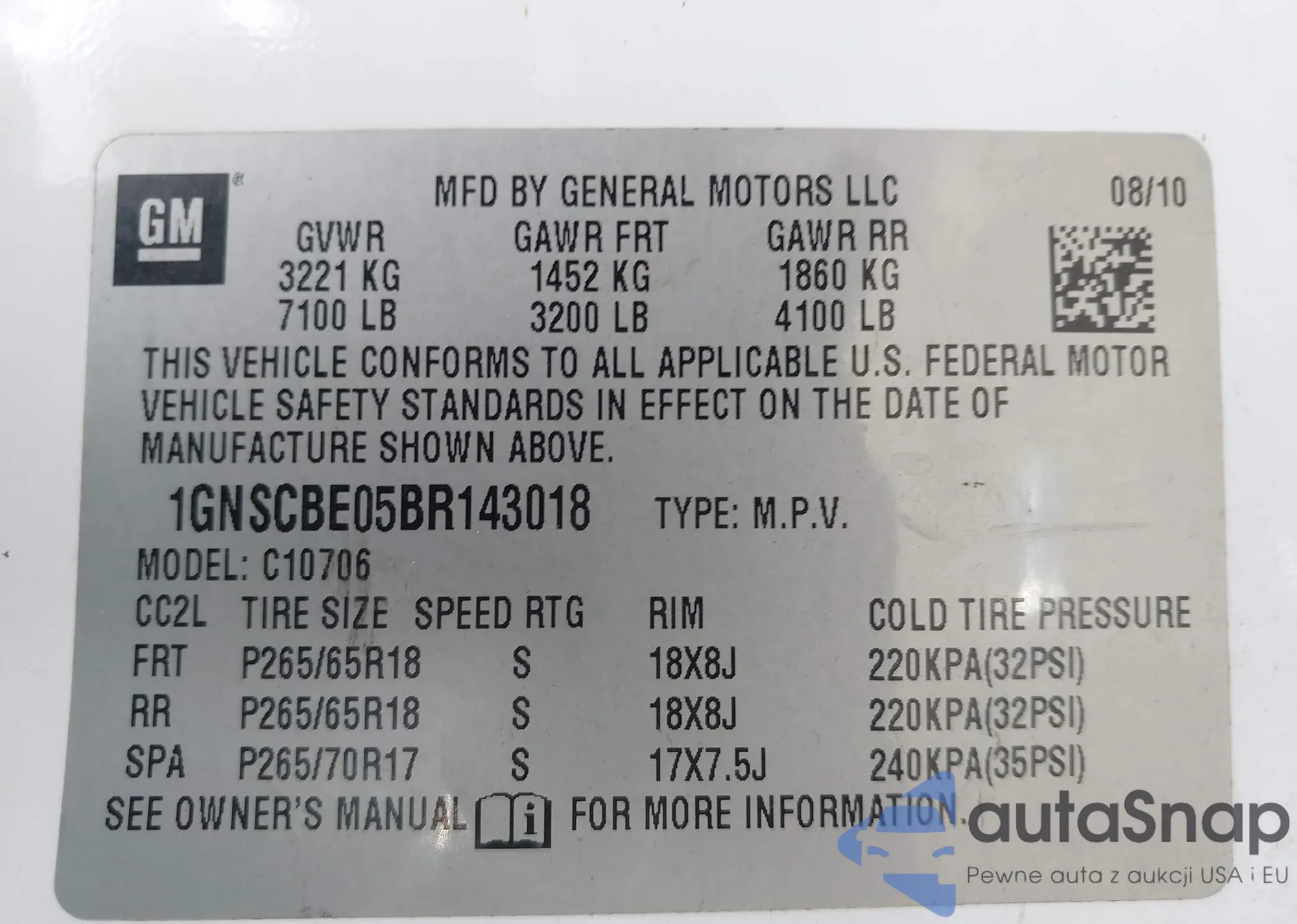 VIN: 1GNSCBE05BR143018