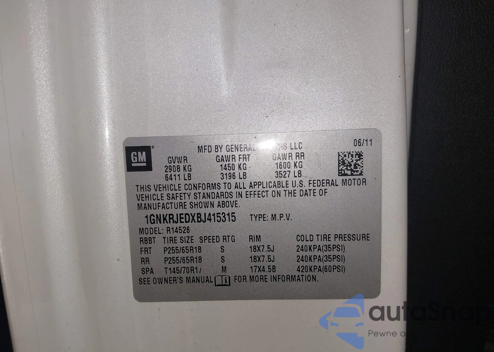 VIN: 1GNKRJEDXBJ415315