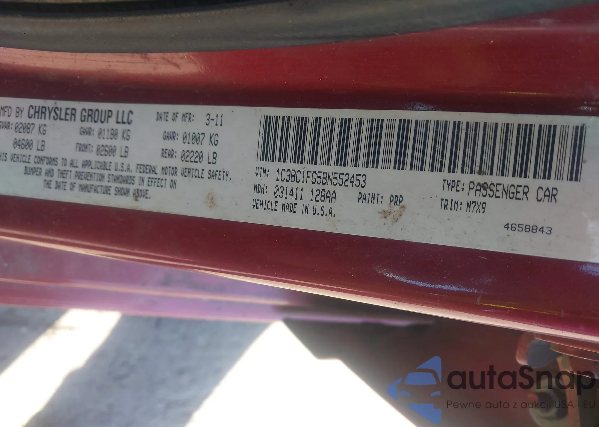 VIN: 1C3BC1FG5BN552453