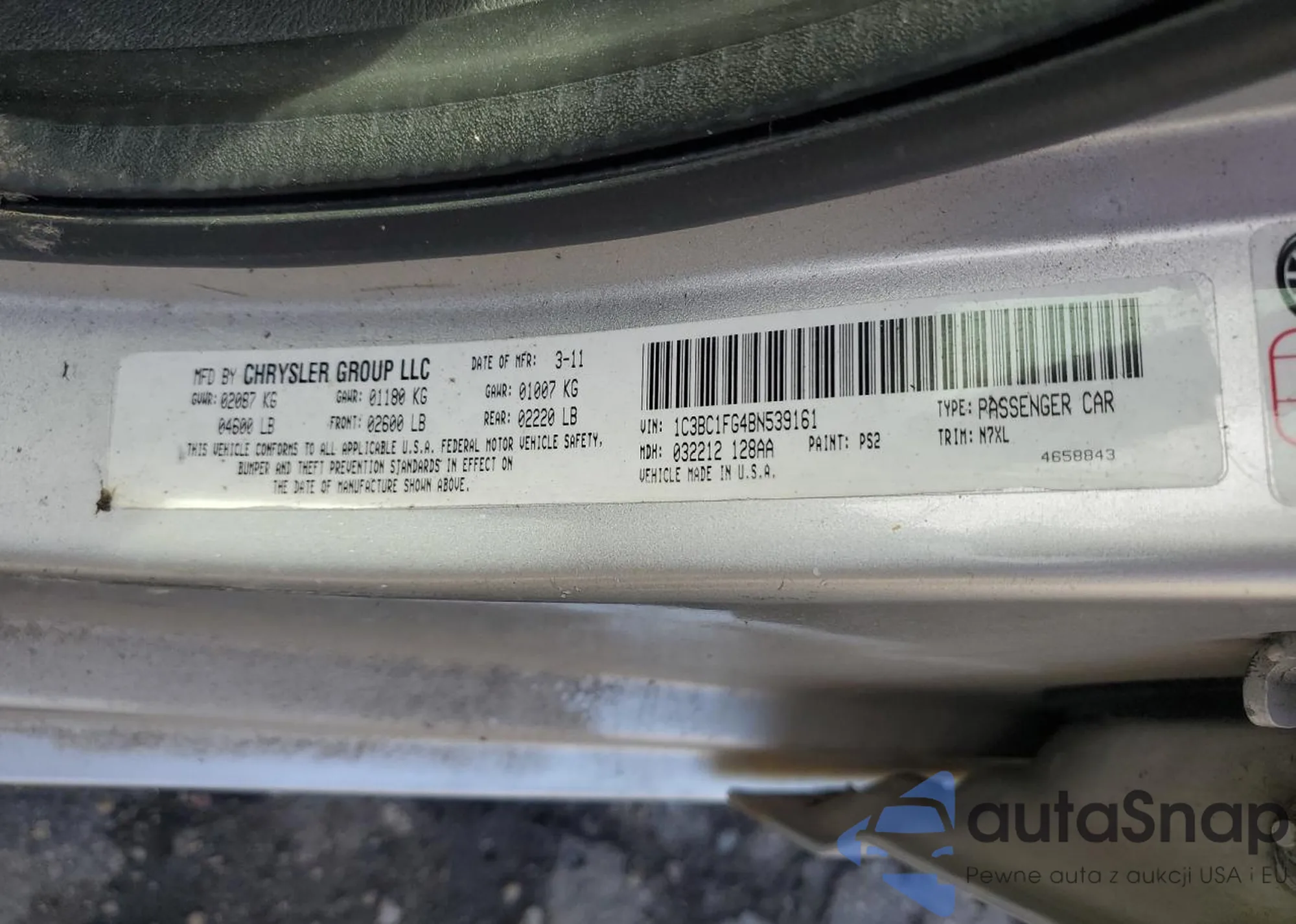 VIN: 1C3BC1FG4BN539161