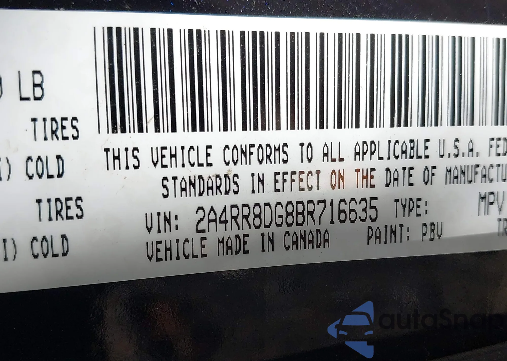 VIN: 2A4RR8DG8BR716635