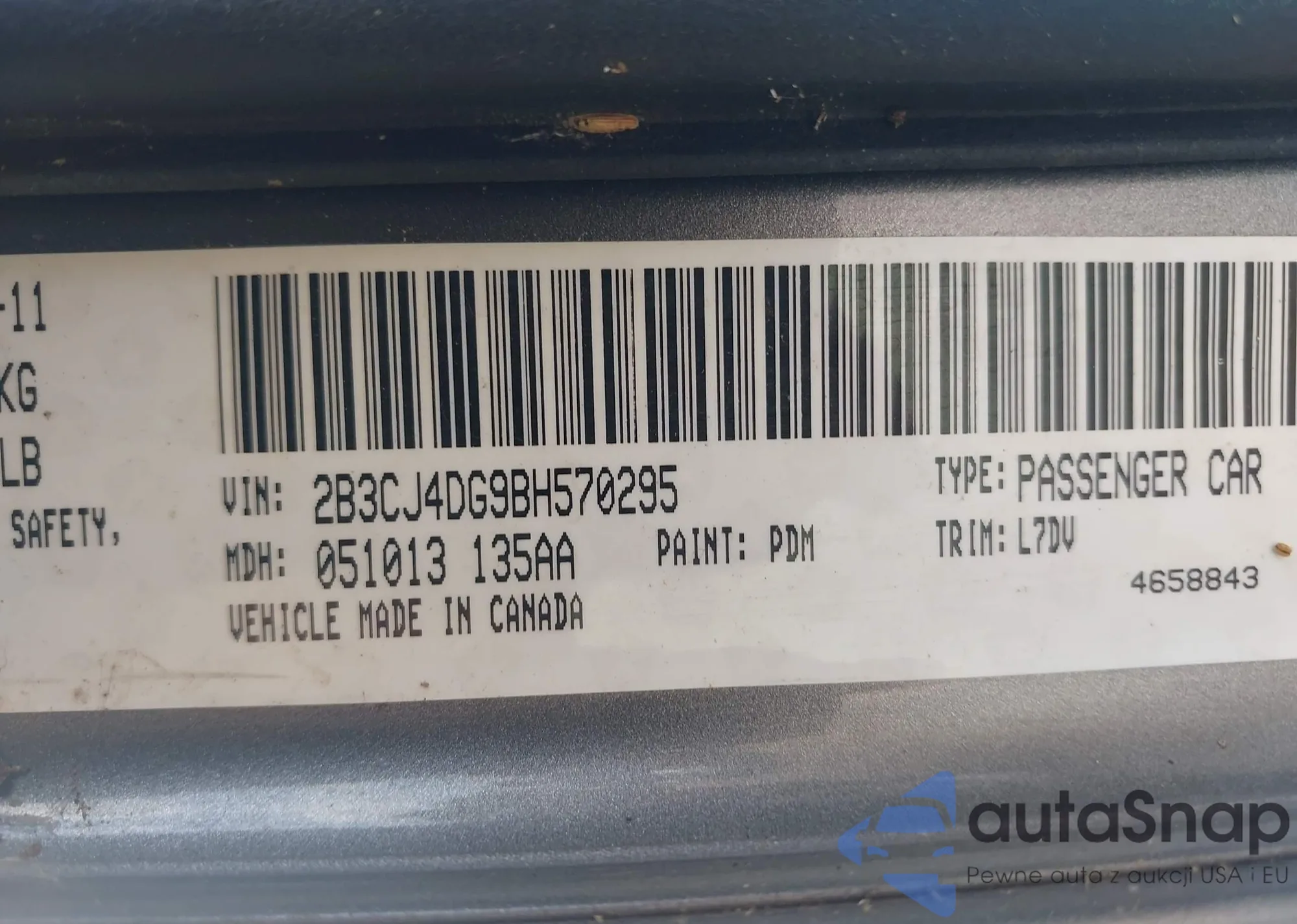 VIN: 2B3CJ4DG9BH570295