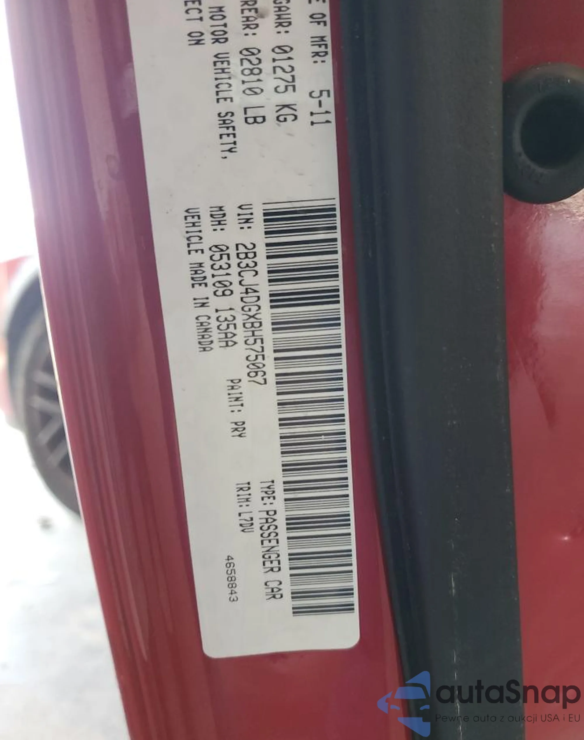 VIN: 2B3CJ4DGXBH575067