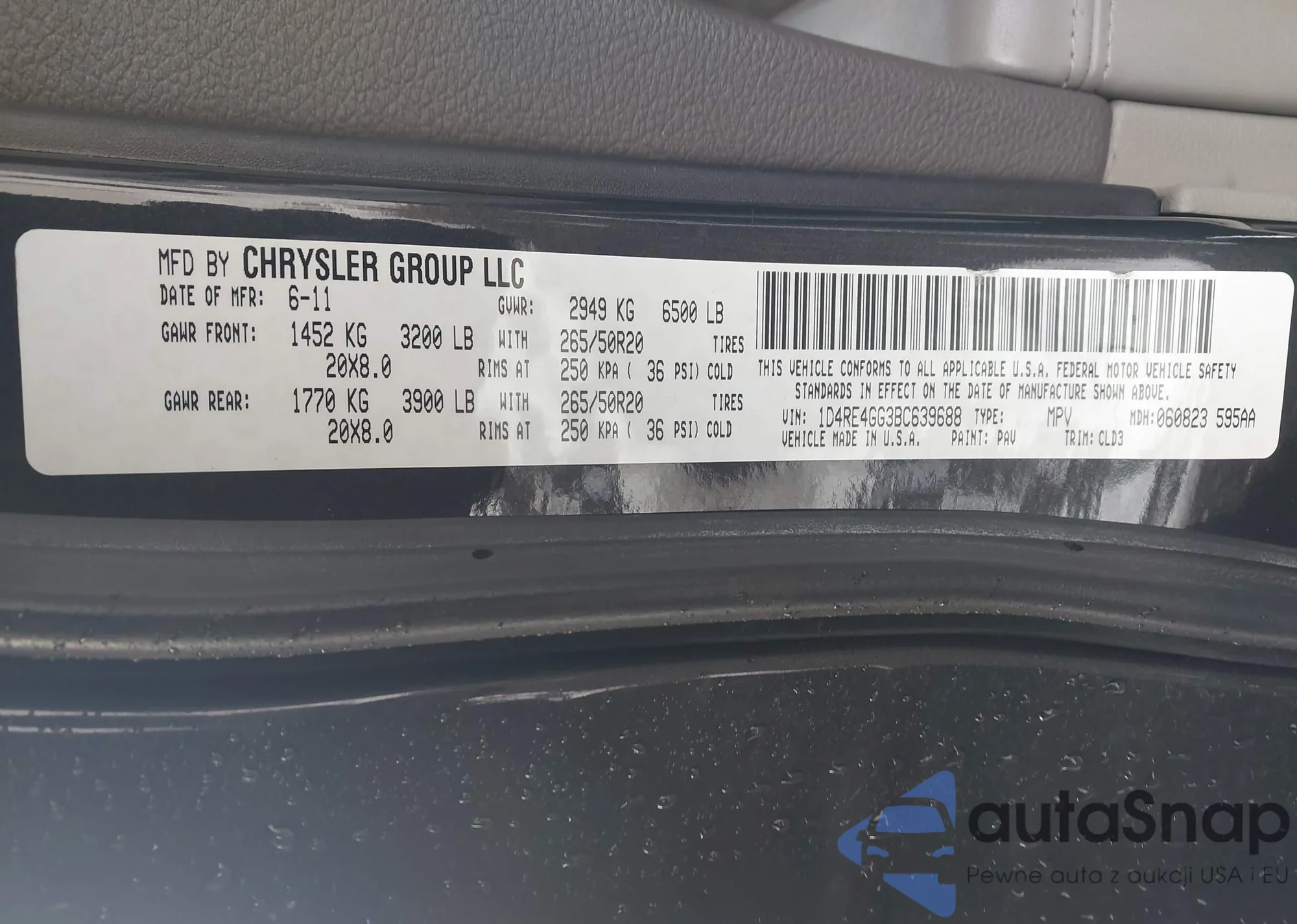 The car Dodge Durango 2011 (VIN 1D4RE4GG3BC639688) has not been auctioned before. The documents are clean, and the mileage matches or is below the market average. Sold by an insurance company – we recommend purchase. Delivery to the port will take approx. 6–8 weeks.