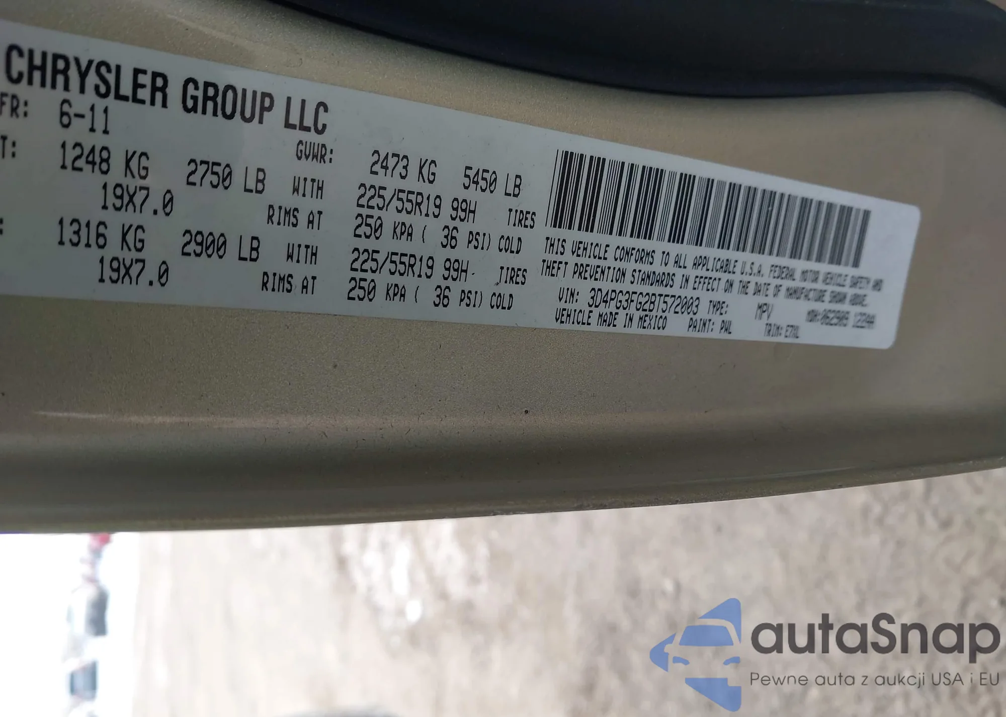 The car Dodge Journey 2011 (VIN 3D4PG3FG2BT572003) is sold by an unverified seller. We recommend checking the Carfax report and confirming registration possibilities before purchase.