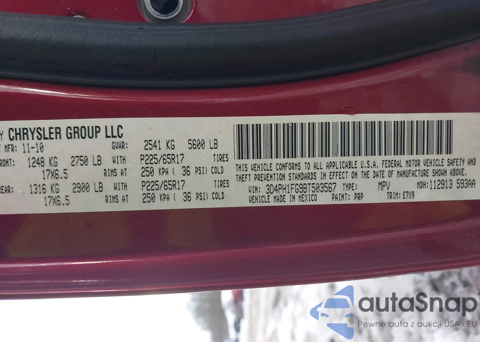 VIN: 3D4PH1FG9BT503567