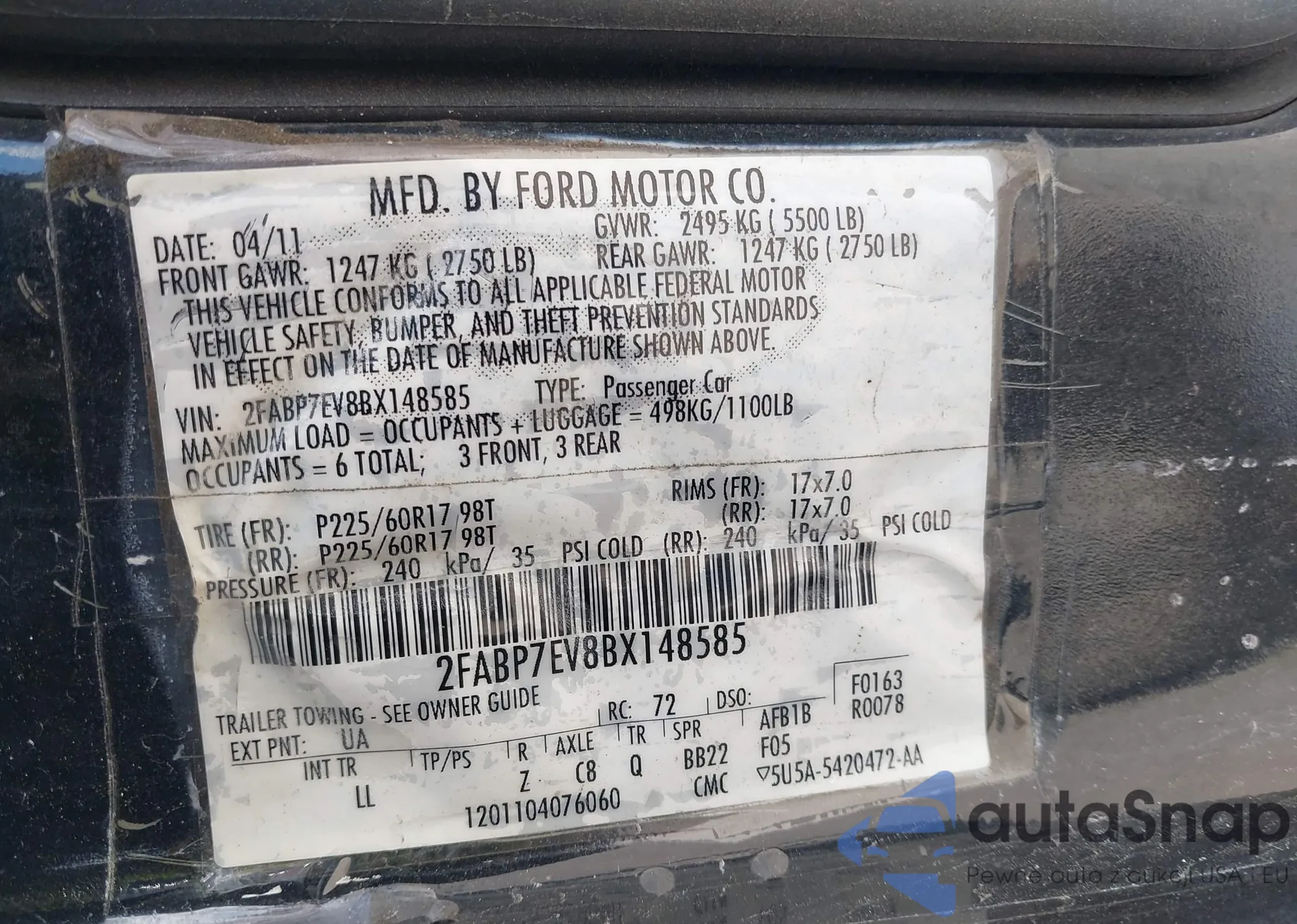 VIN: 2FABP7EV8BX148585