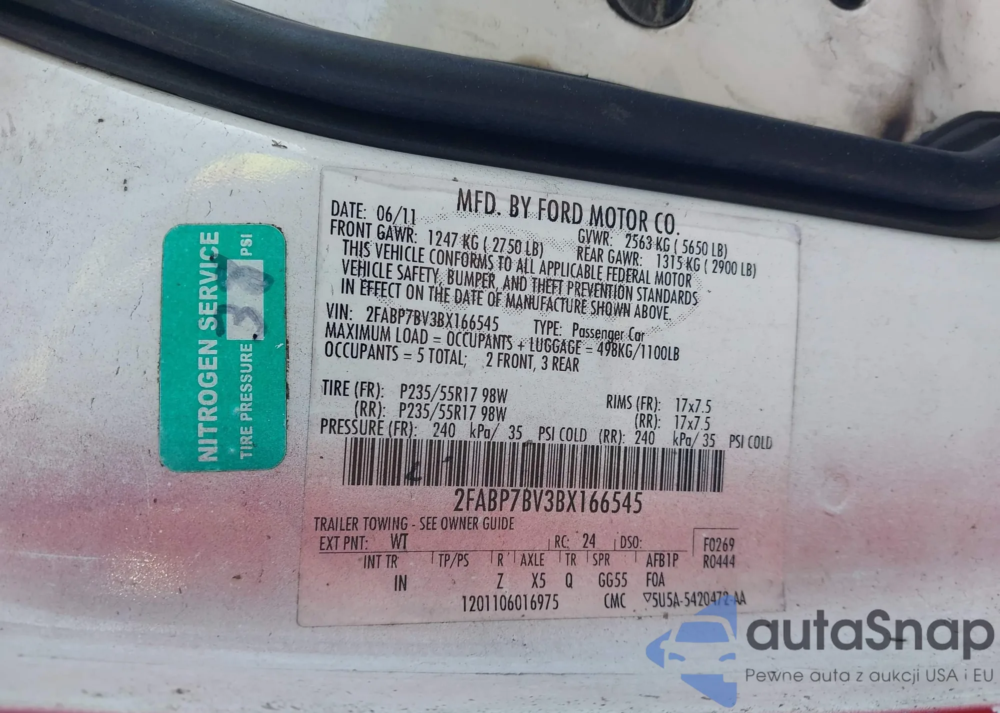 VIN: 2FABP7BV3BX166545