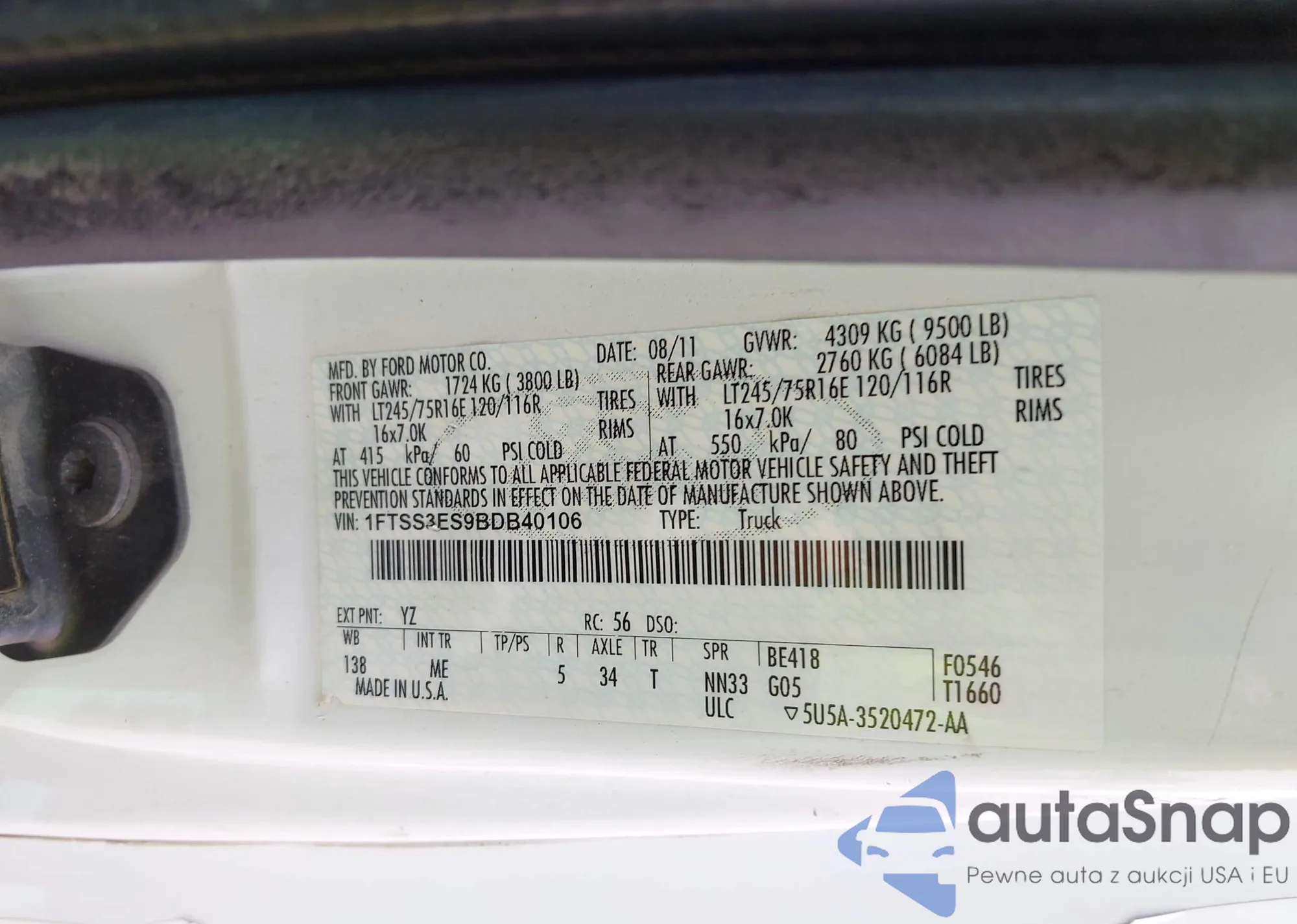 VIN: 1FTSS3ES9BDB40106