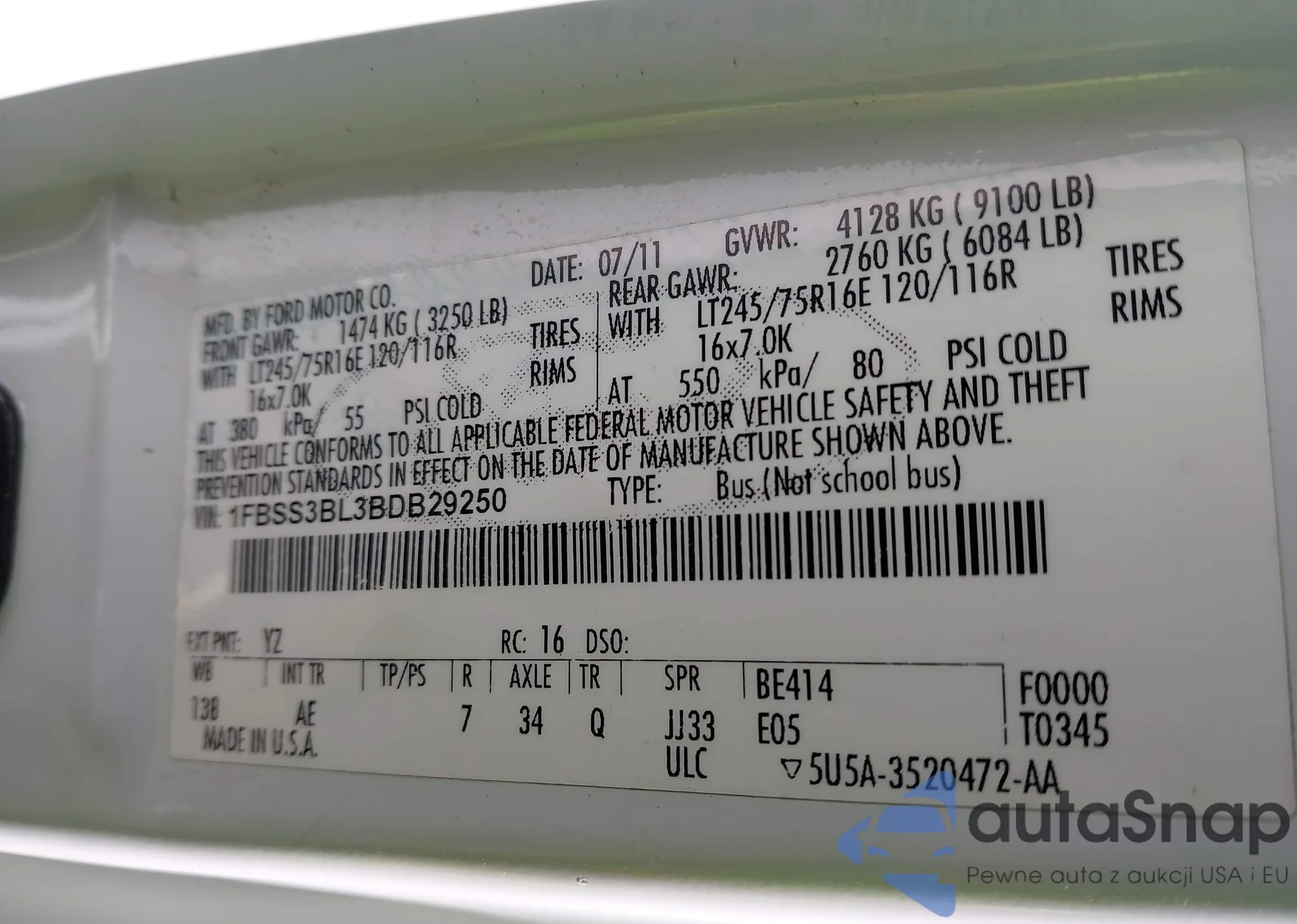VIN: 1FBSS3BL3BDB29250