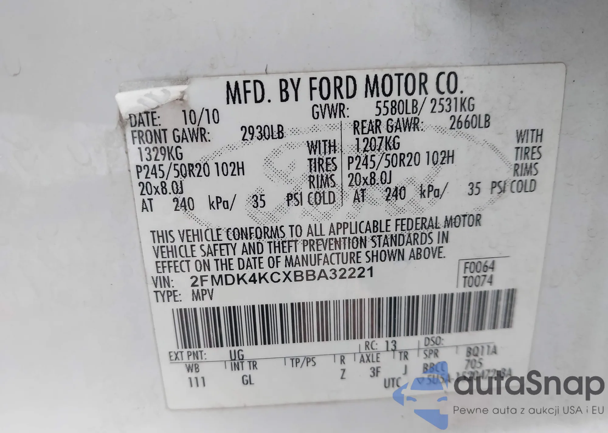 VIN: 2FMDK4KCXBBA32221