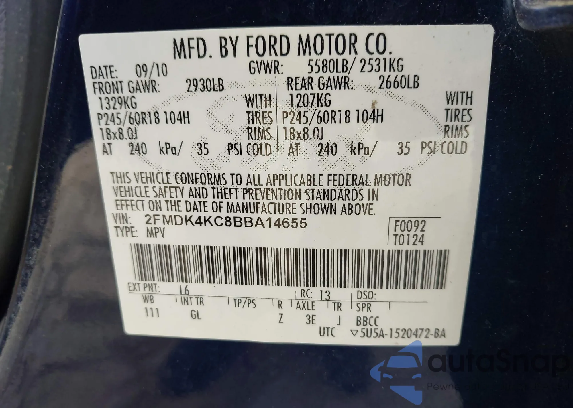 VIN: 2FMDK4KC8BBA14655