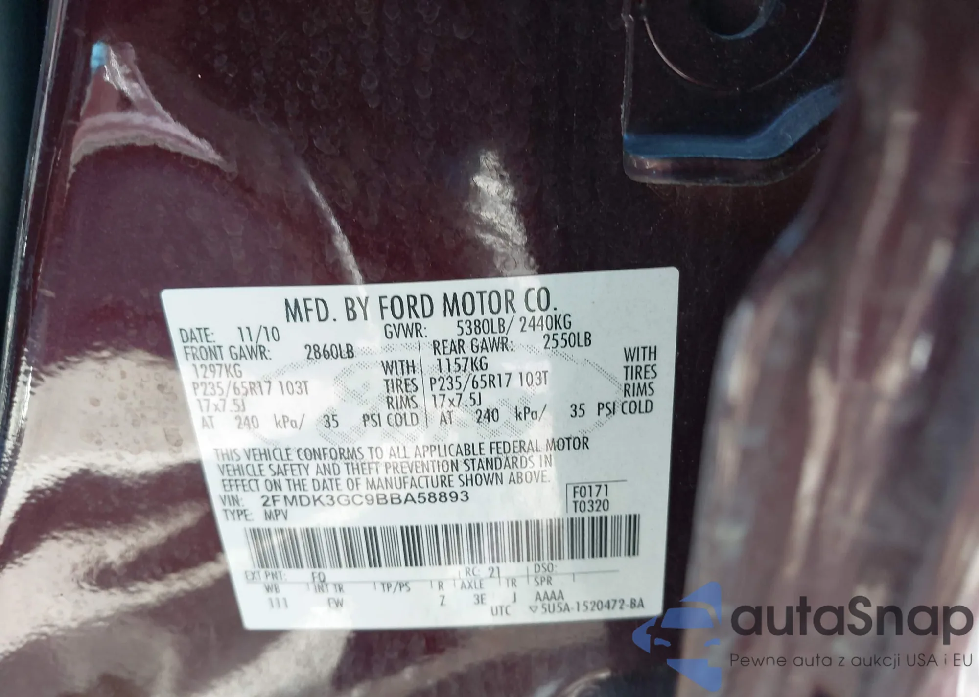 VIN: 2FMDK3GC9BBA58893