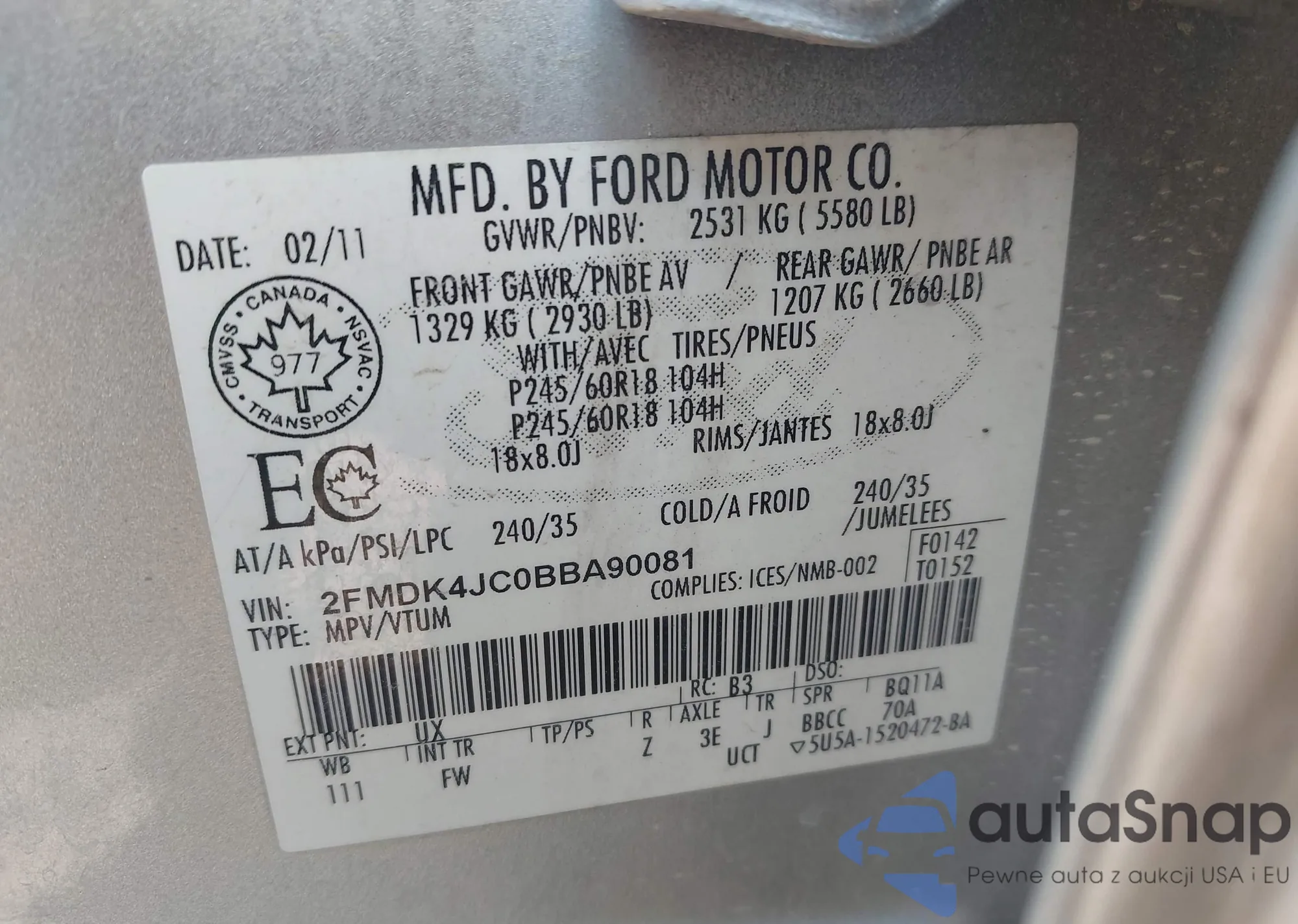 VIN: 2FMDK4JC0BBA90081