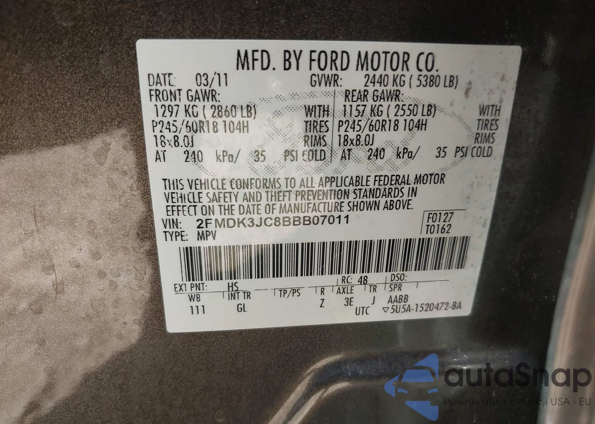 VIN: 2FMDK3JC8BBB07011
