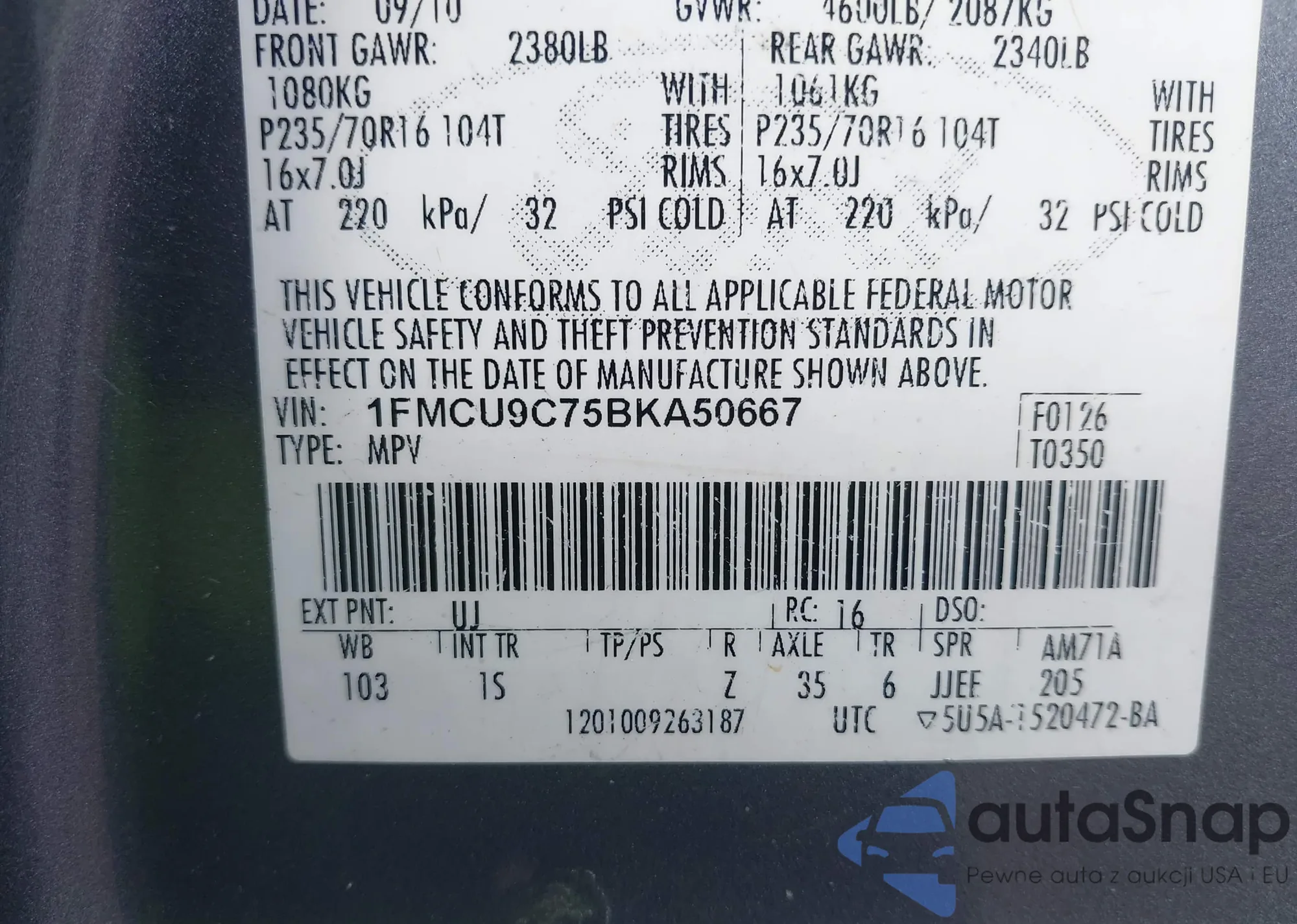 VIN: 1FMCU9C75BKA50667