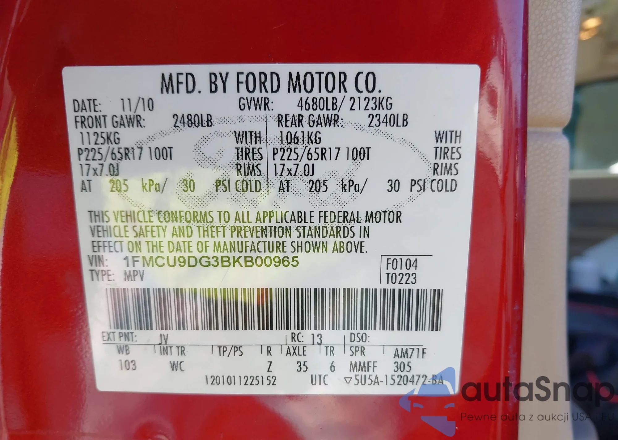 • VIN: 1FMCU9DG3BKB00965