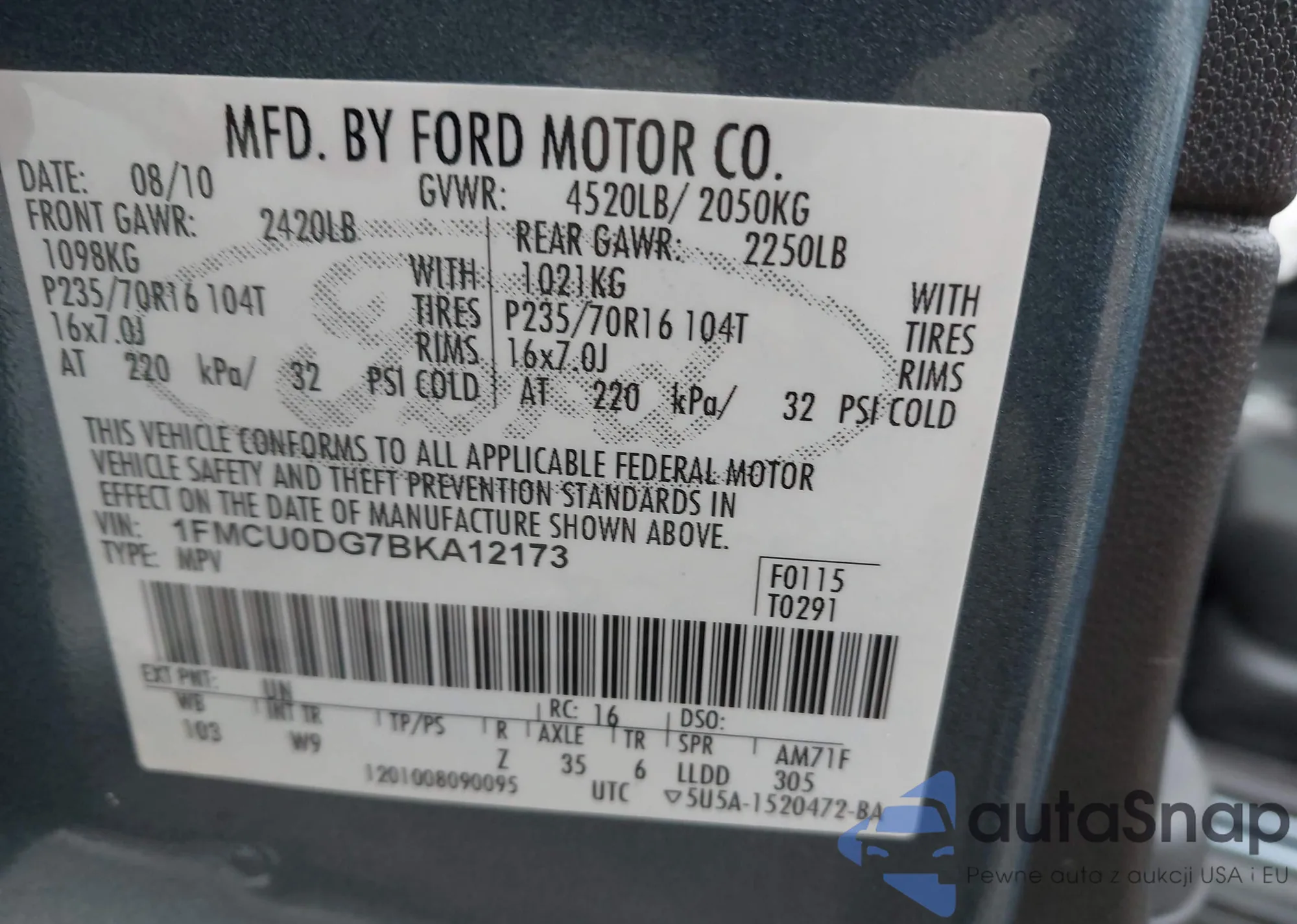VIN: 1FMCU0DG7BKA12173
