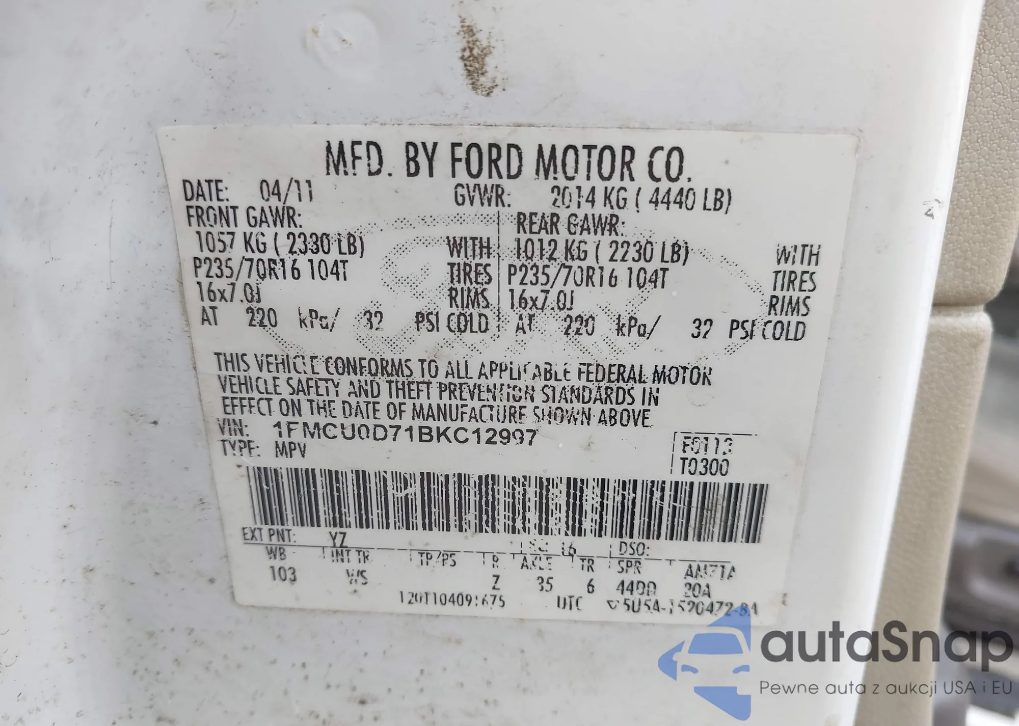 VIN: 1FMCU0D71BKC12997