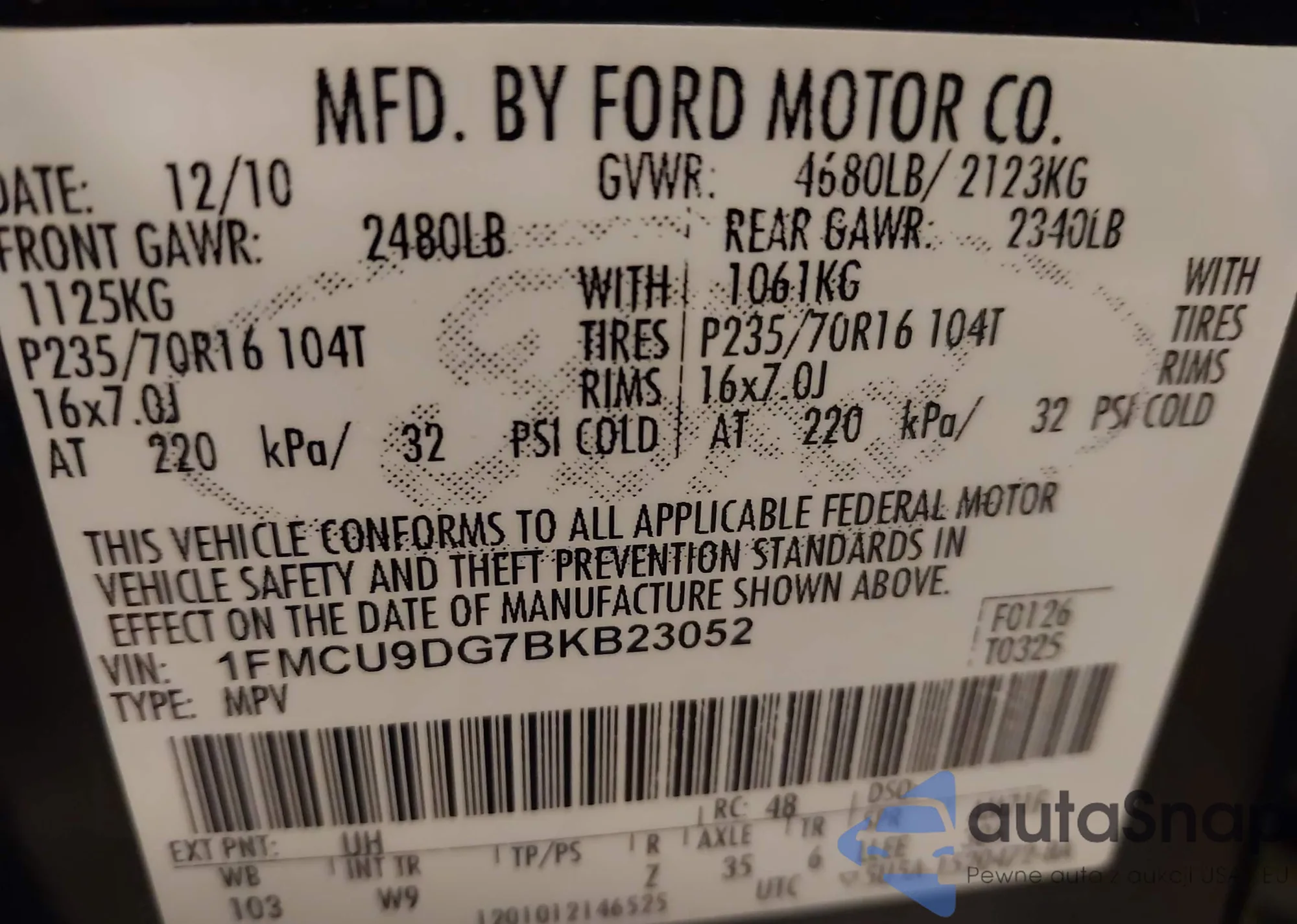 VIN: 1FMCU9DG7BKB23052