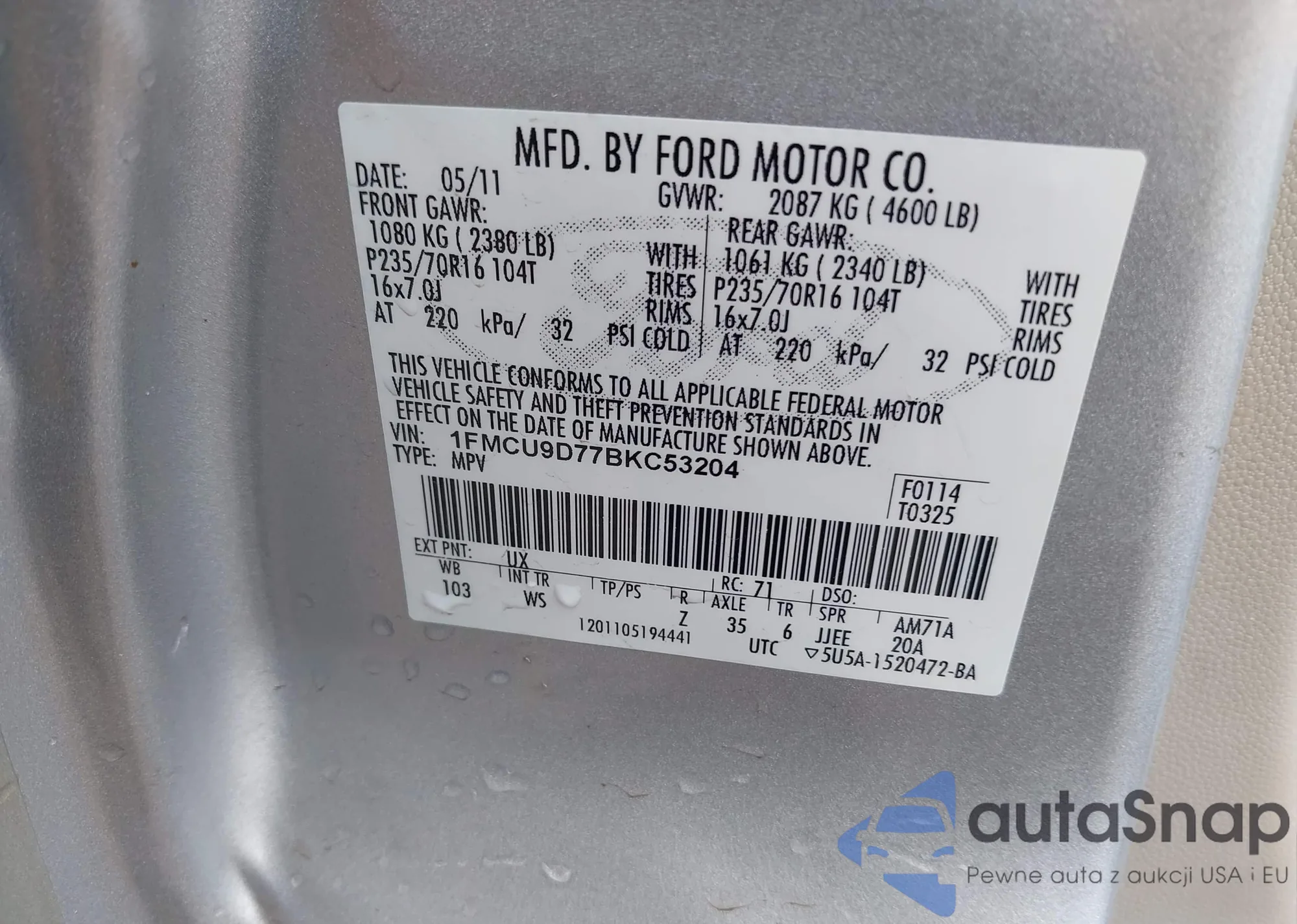 VIN: 1FMCU9D77BKC53204