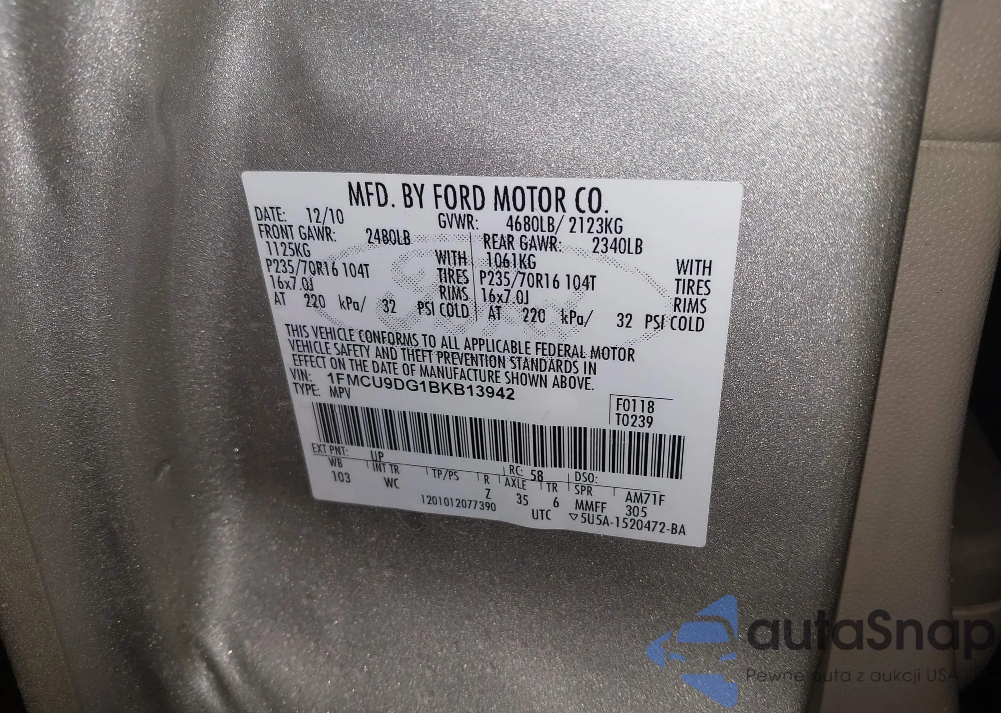 VIN: 1FMCU9DG1BKB13942