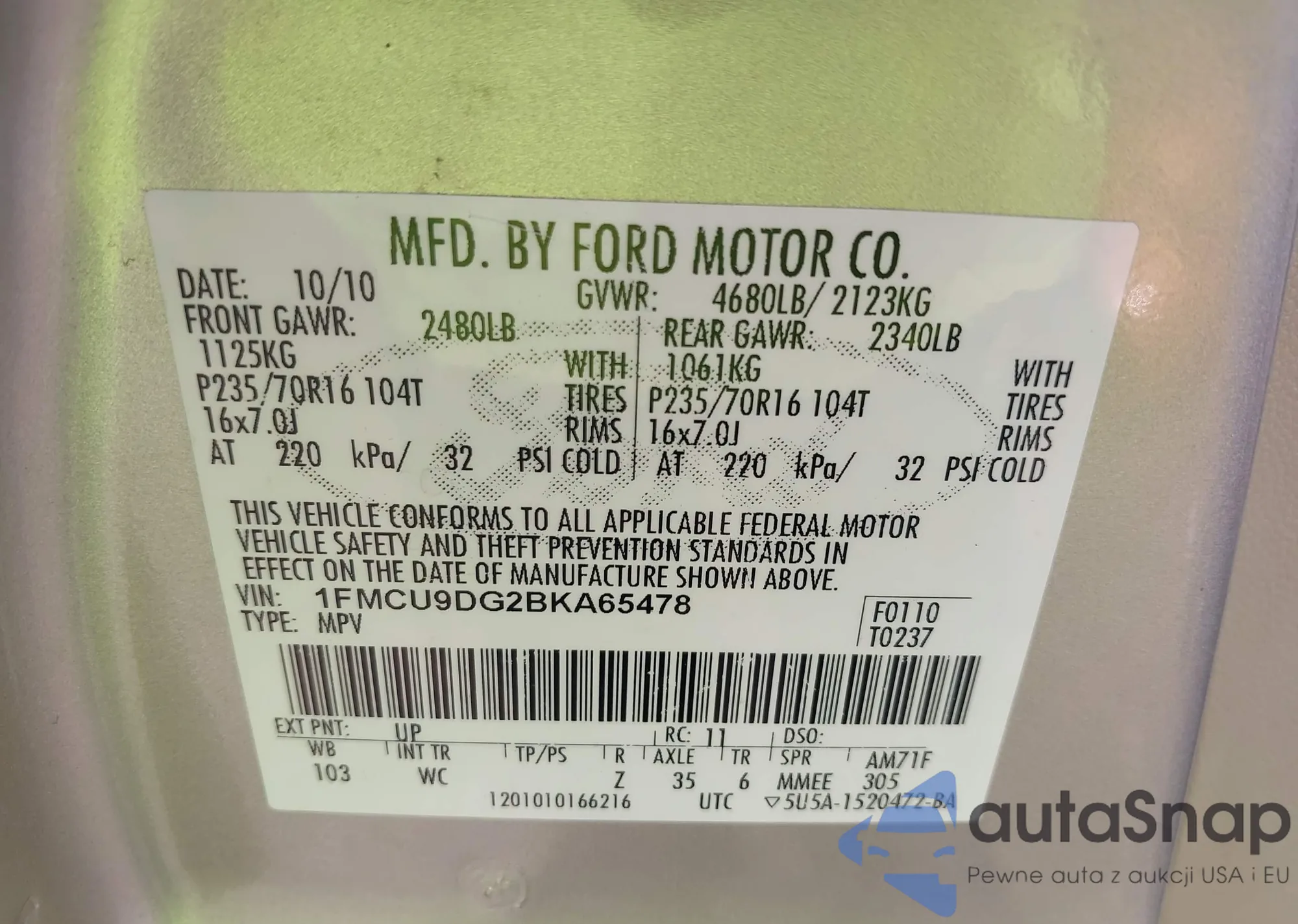 The car Ford Escape 2011 (VIN 1FMCU9DG2BKA65478) has already been auctioned 1 times and/or is sold by an unverified seller. We recommend checking the Carfax report and confirming registration possibilities before purchase.