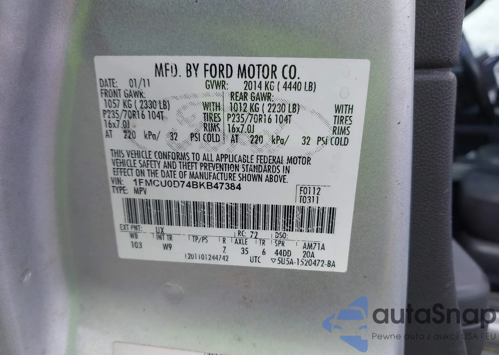 VIN: 1FMCU0D74BKB47384