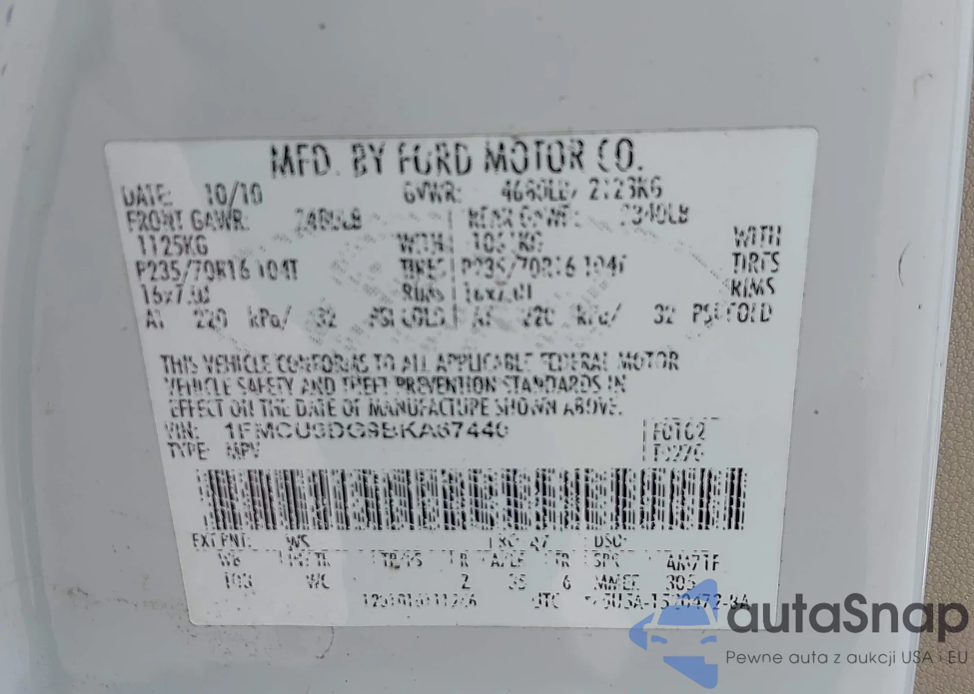 VIN: 1FMCU9DG9BKA67440