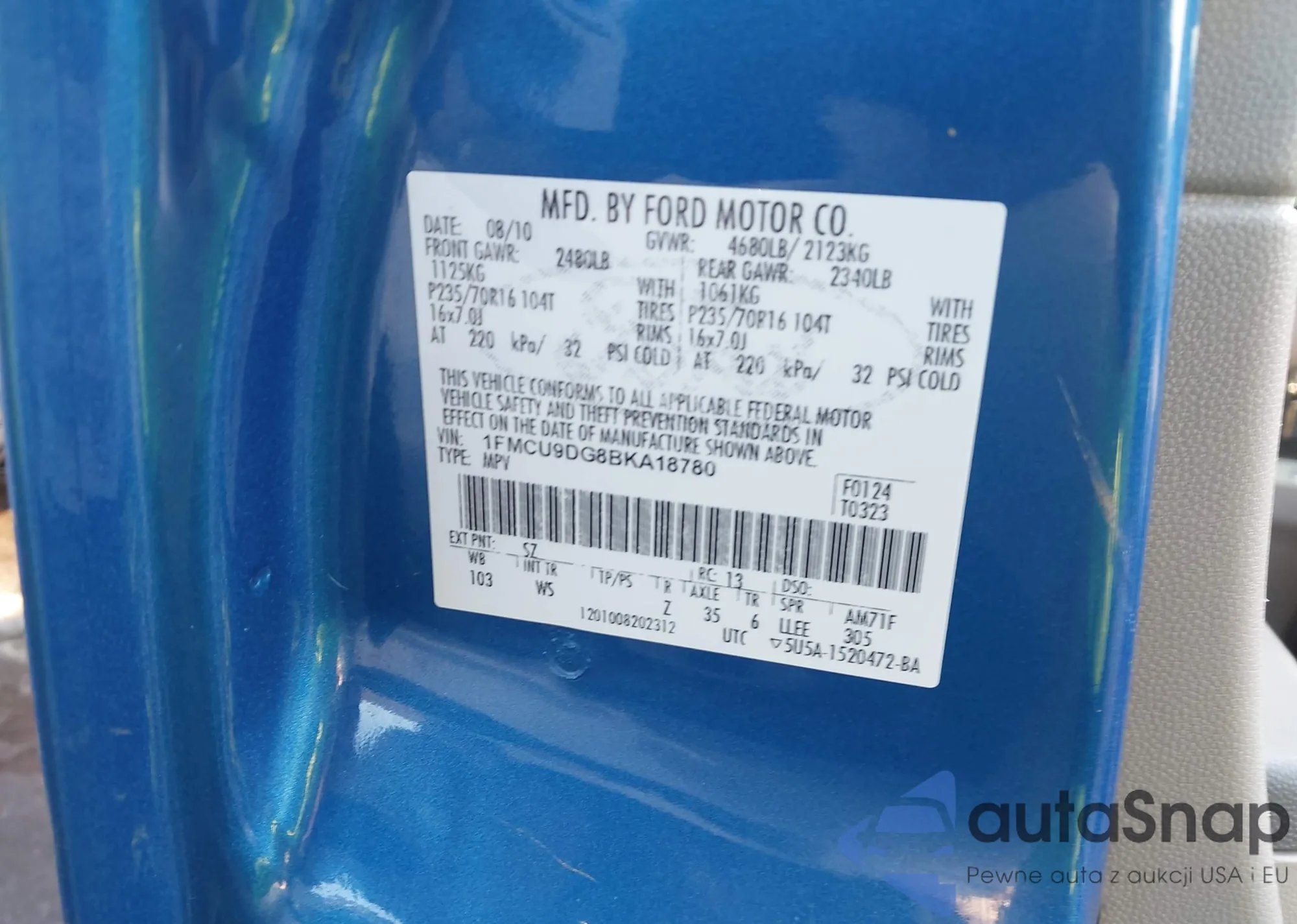VIN: 1FMCU9DG8BKA18780