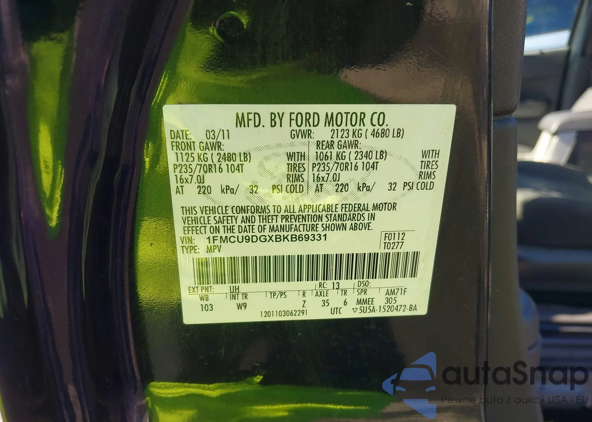 VIN: 1FMCU9DGXBKB69331
