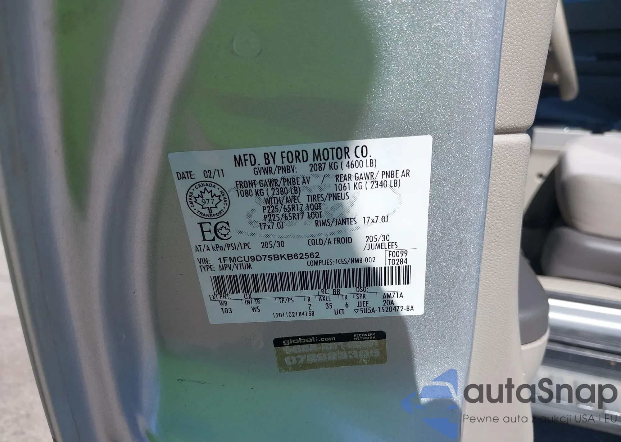 VIN: 1FMCU9D75BKB62562