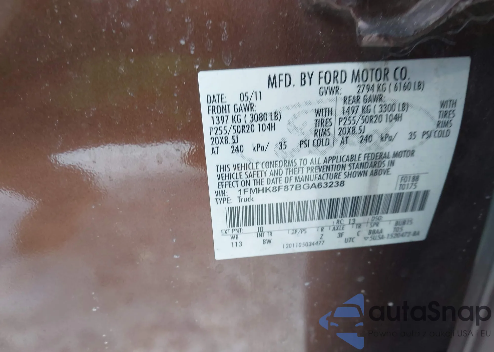 VIN: 1FMHK8F87BGA63238