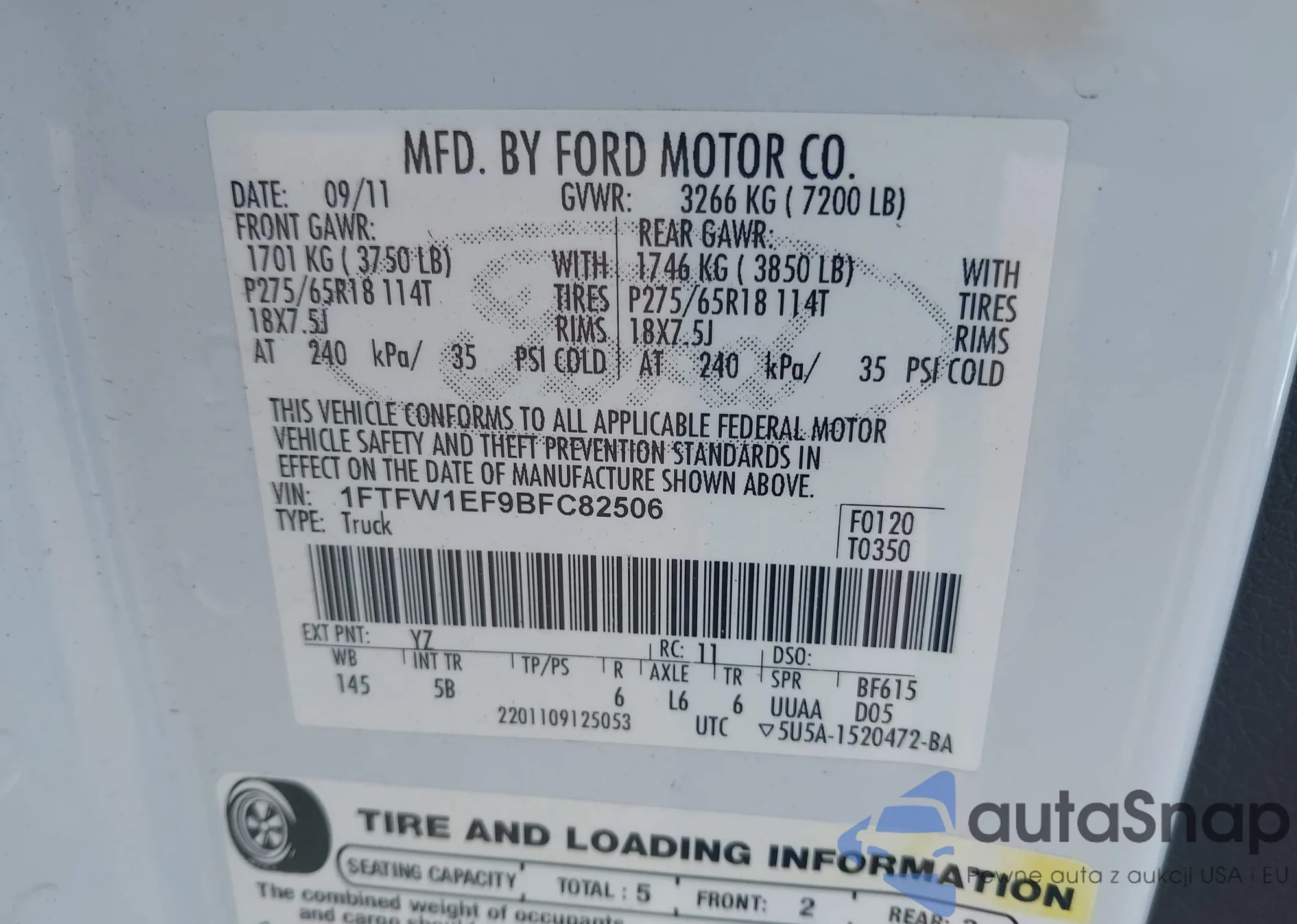 VIN: 1FTFW1EF9BFC82506