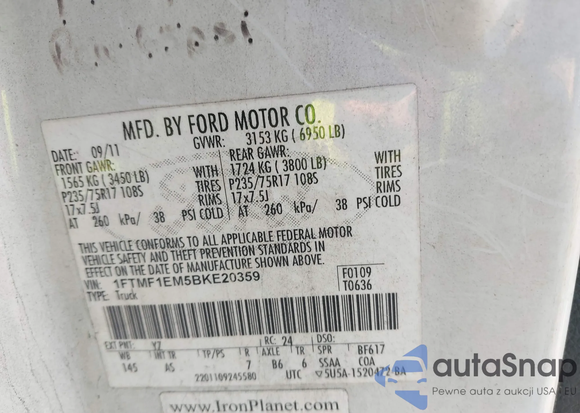 VIN: 1FTMF1EM5BKE20359