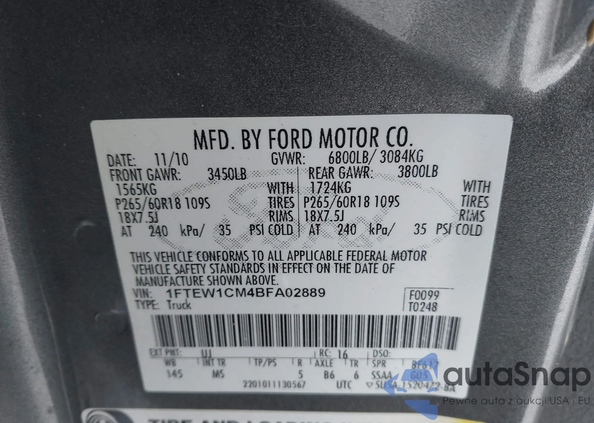 VIN: 1FTEW1CM4BFA02889