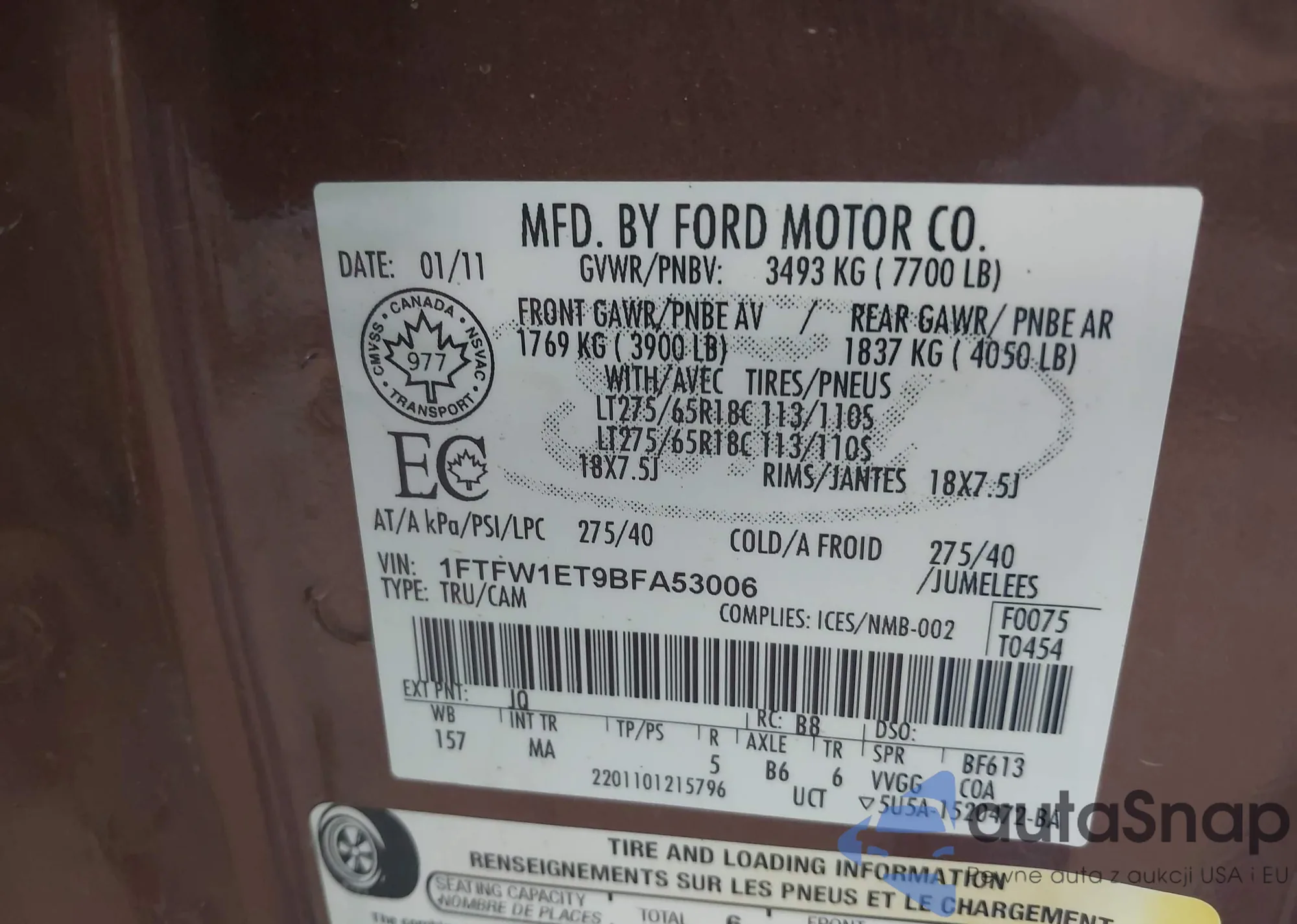 VIN: 1FTFW1ET9BFA53006