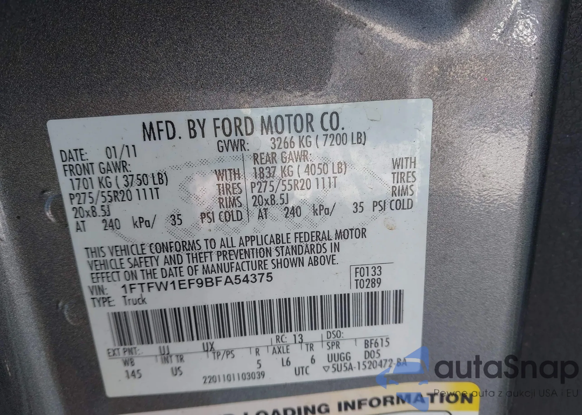 VIN: 1FTFW1EF9BFA54375