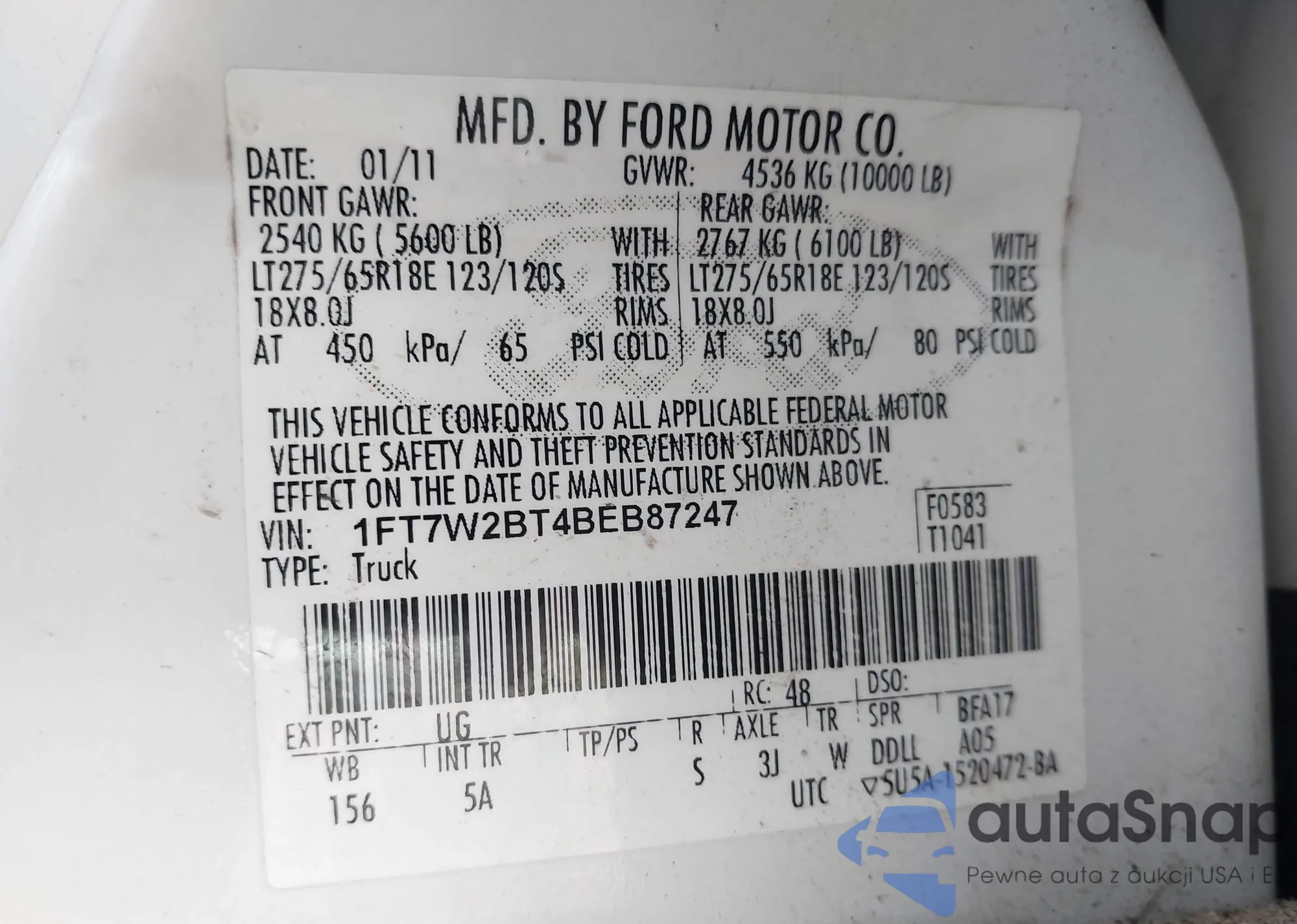 VIN: 1FT7W2BT4BEB87247