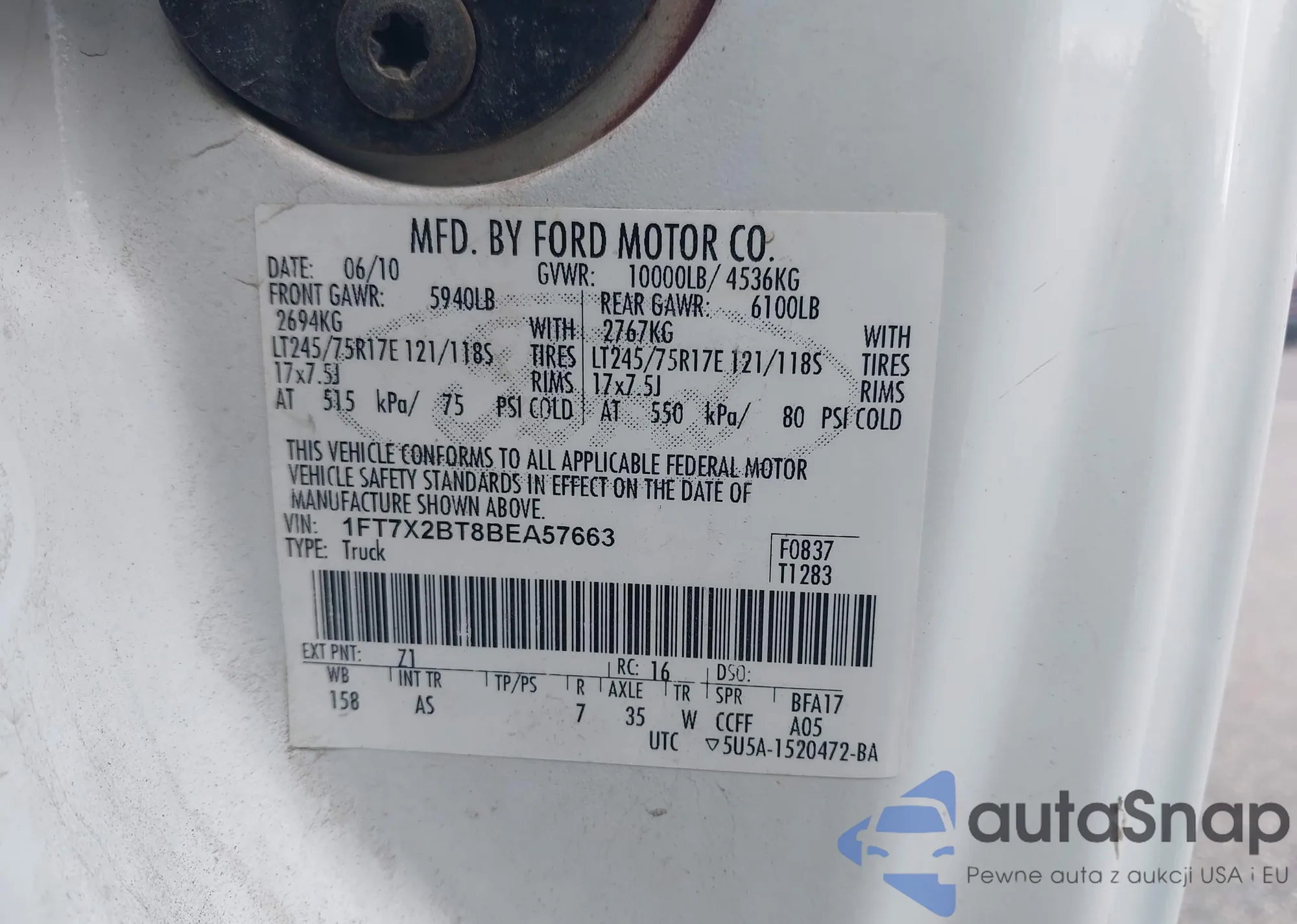VIN: 1FT7X2BT8BEA57663