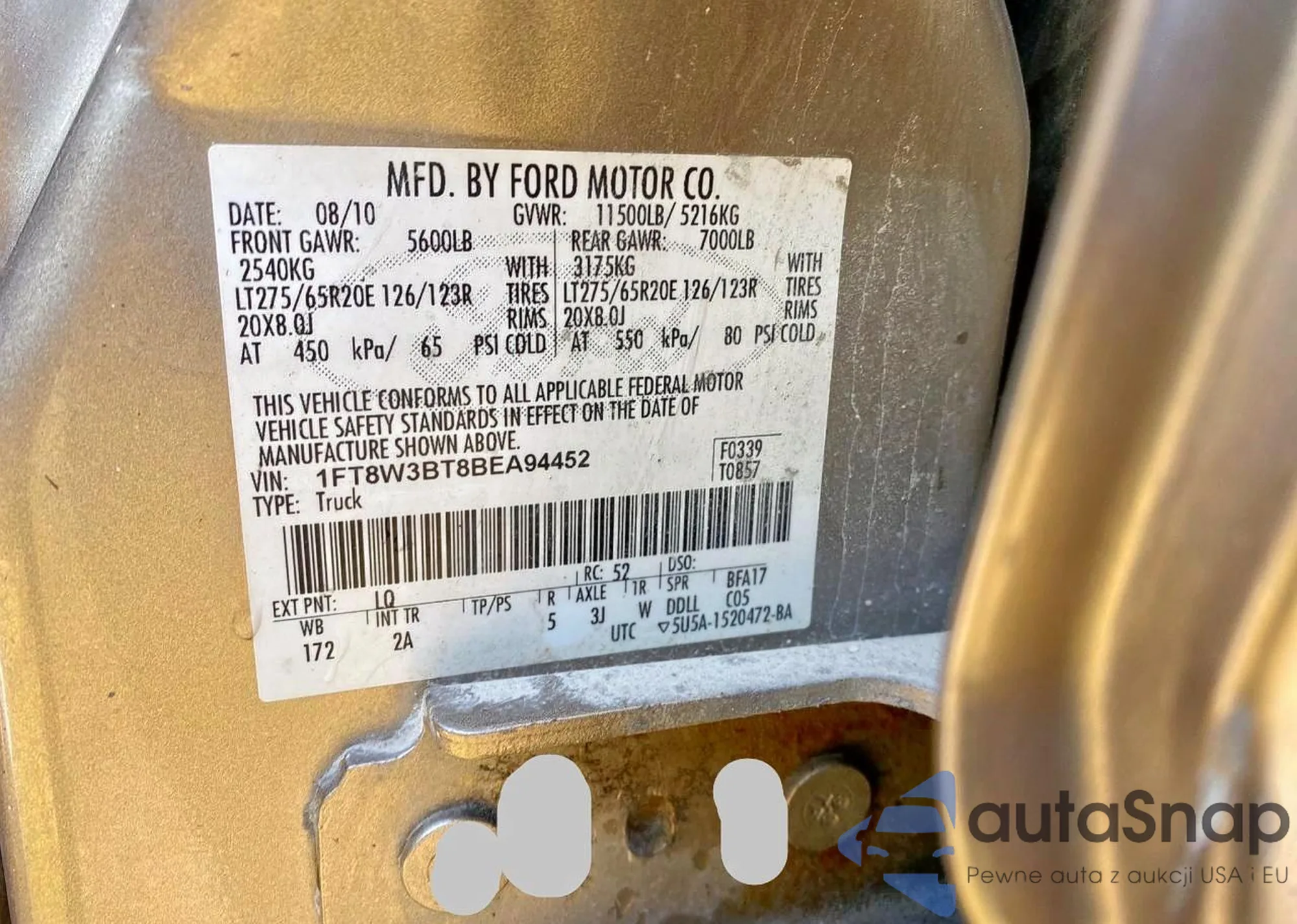 VIN: 1FT8W3BT8BEA94452