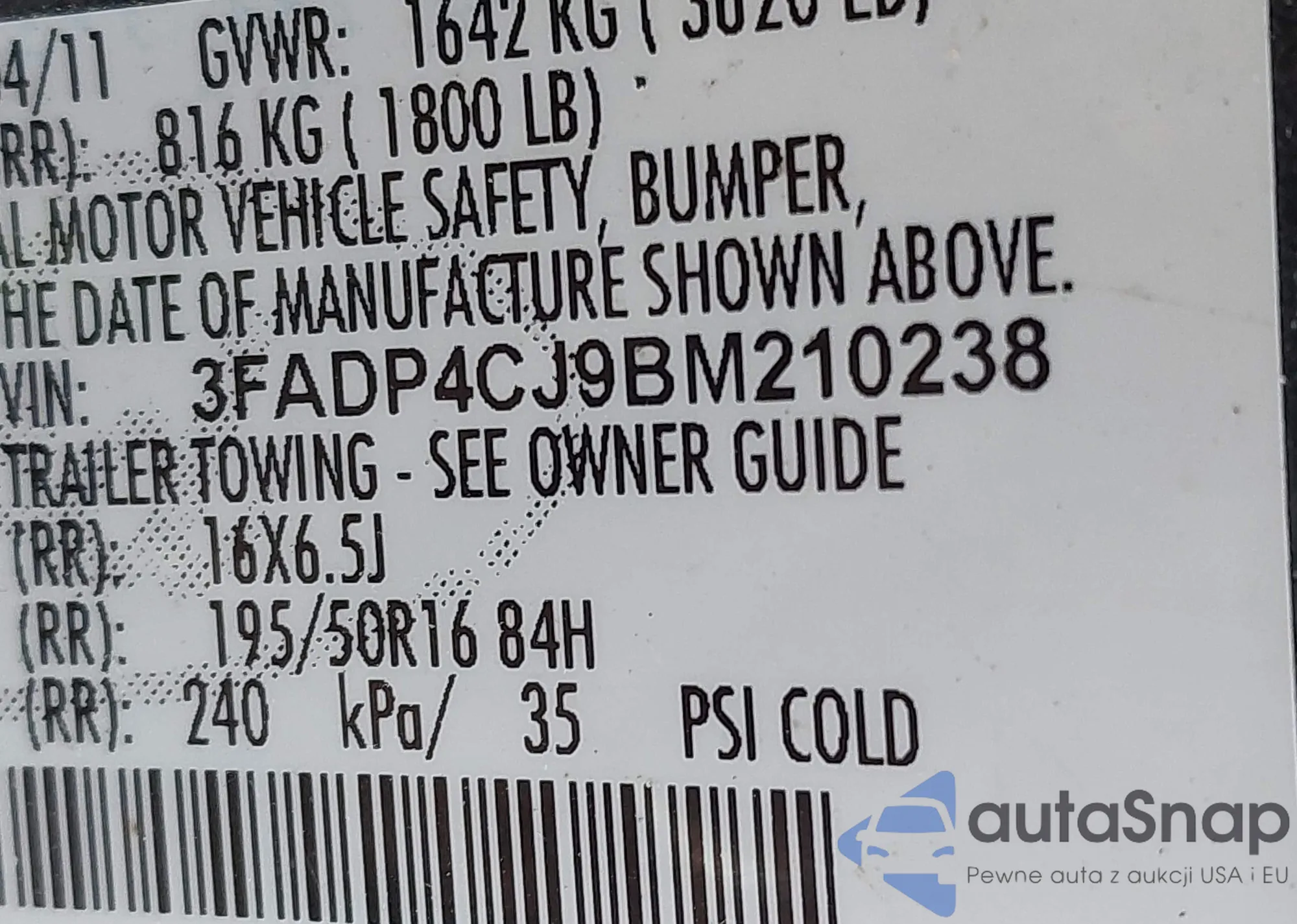 VIN: 3FADP4CJ9BM210238