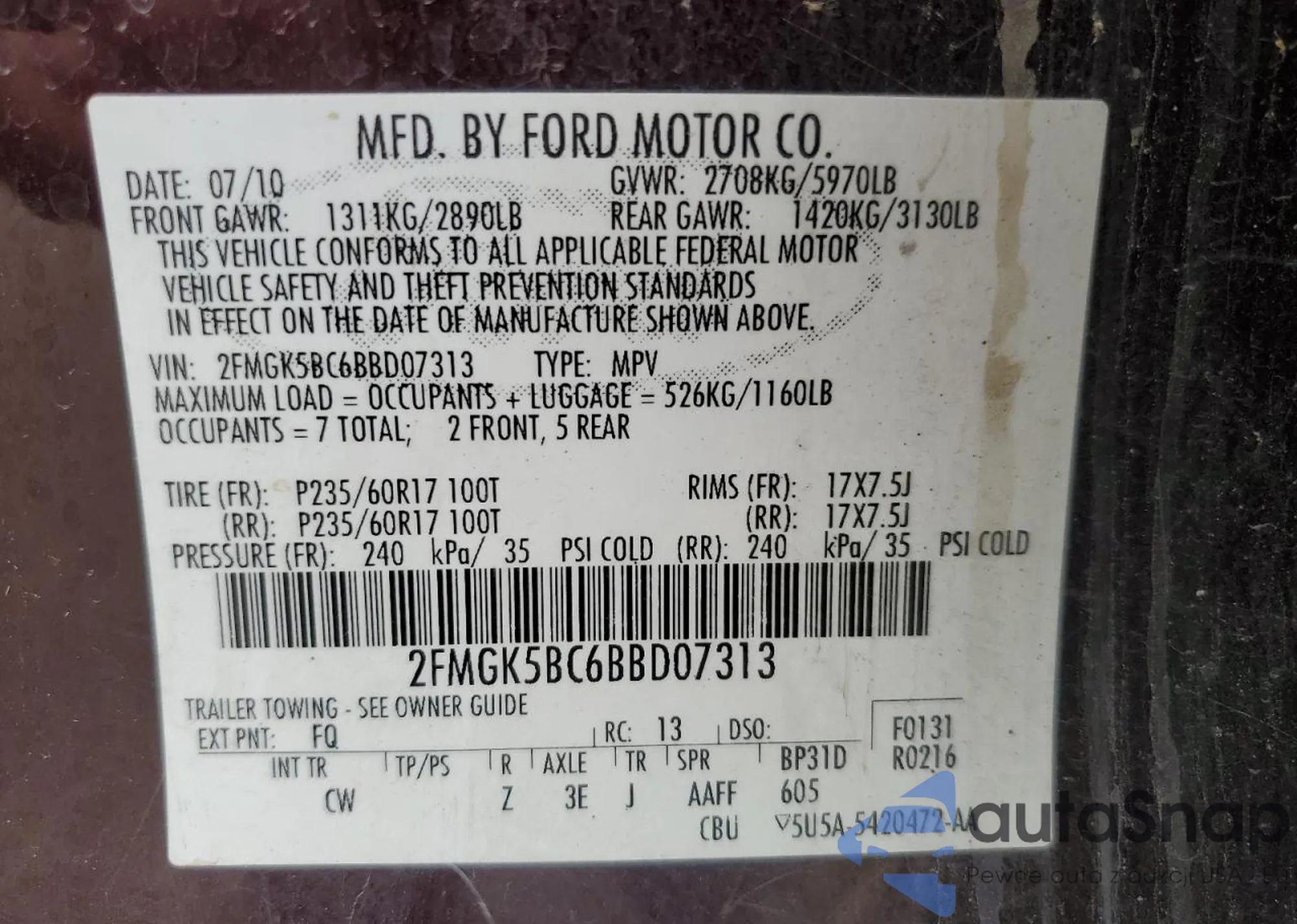 VIN: 2FMGK5BC6BBD07313