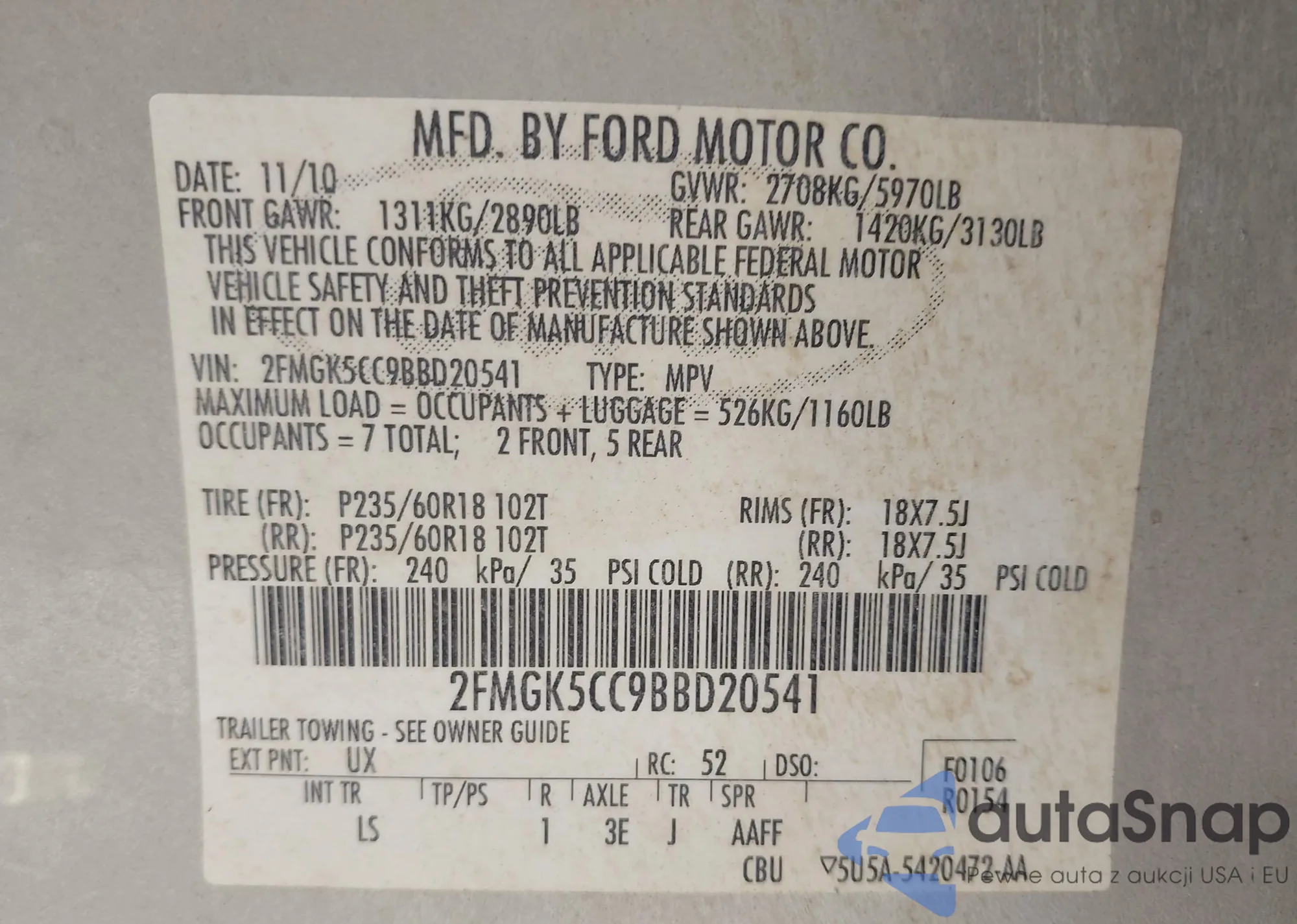 VIN: 2FMGK5CC9BBD20541