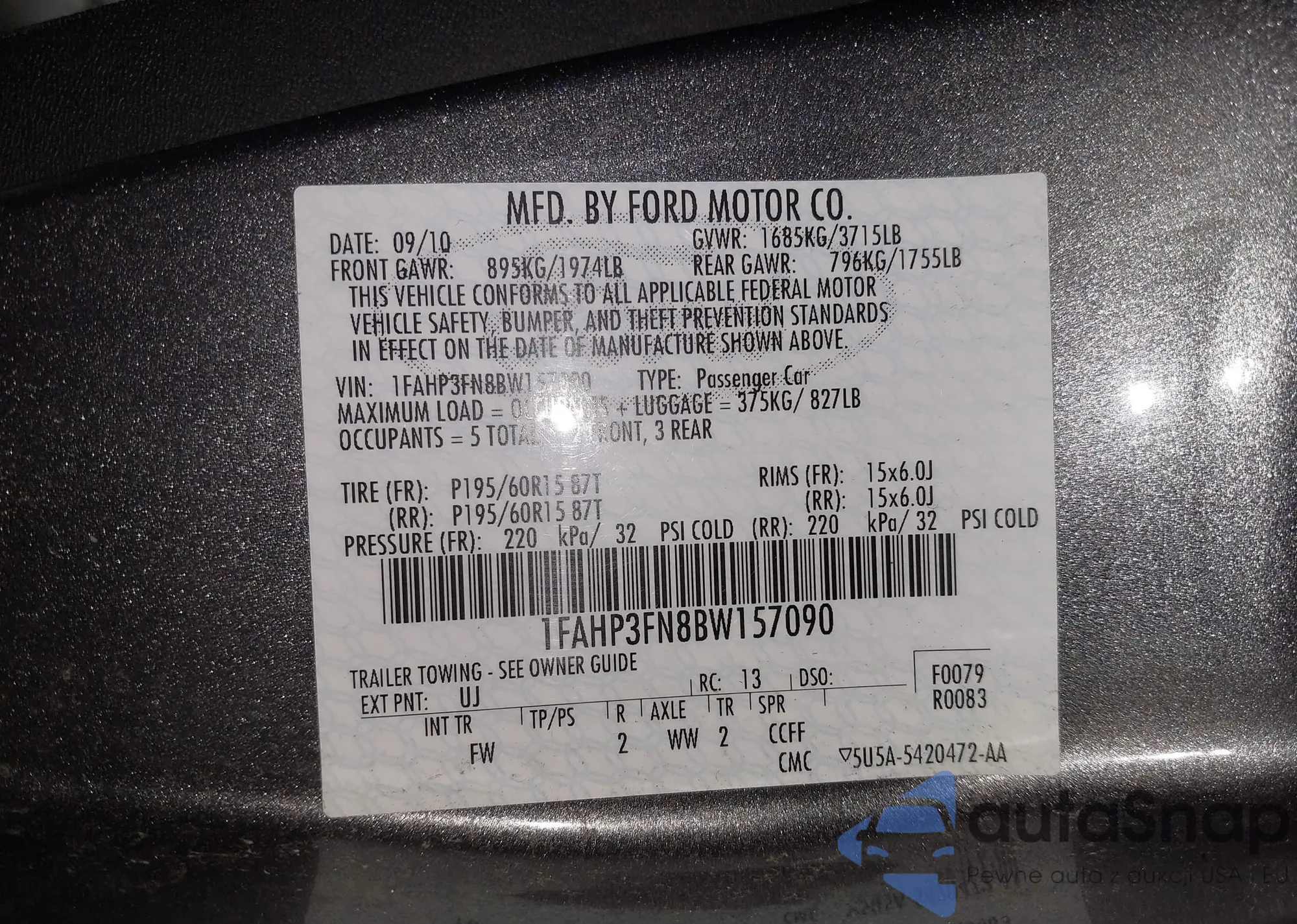 VIN: 1FAHP3FN8BW157090