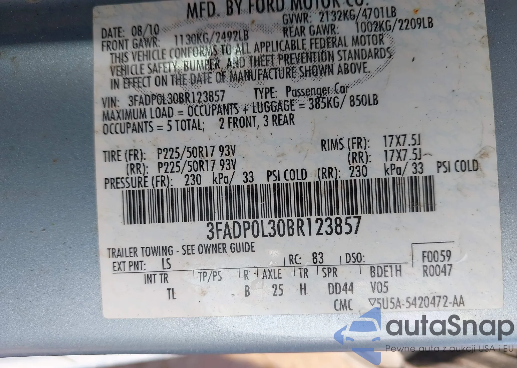 VIN: 3FADP0L30BR123857