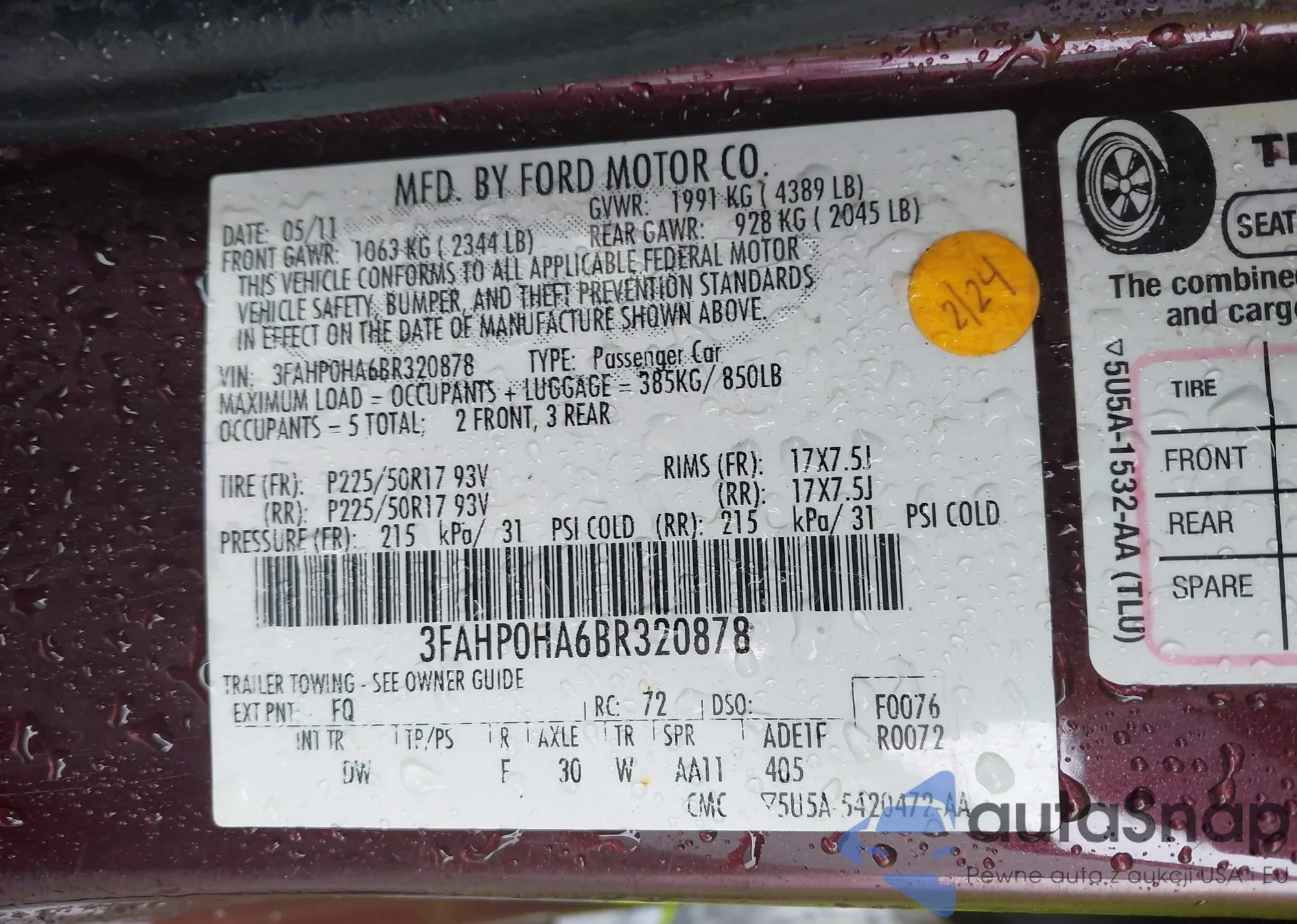 VIN: 3FAHP0HA6BR320878