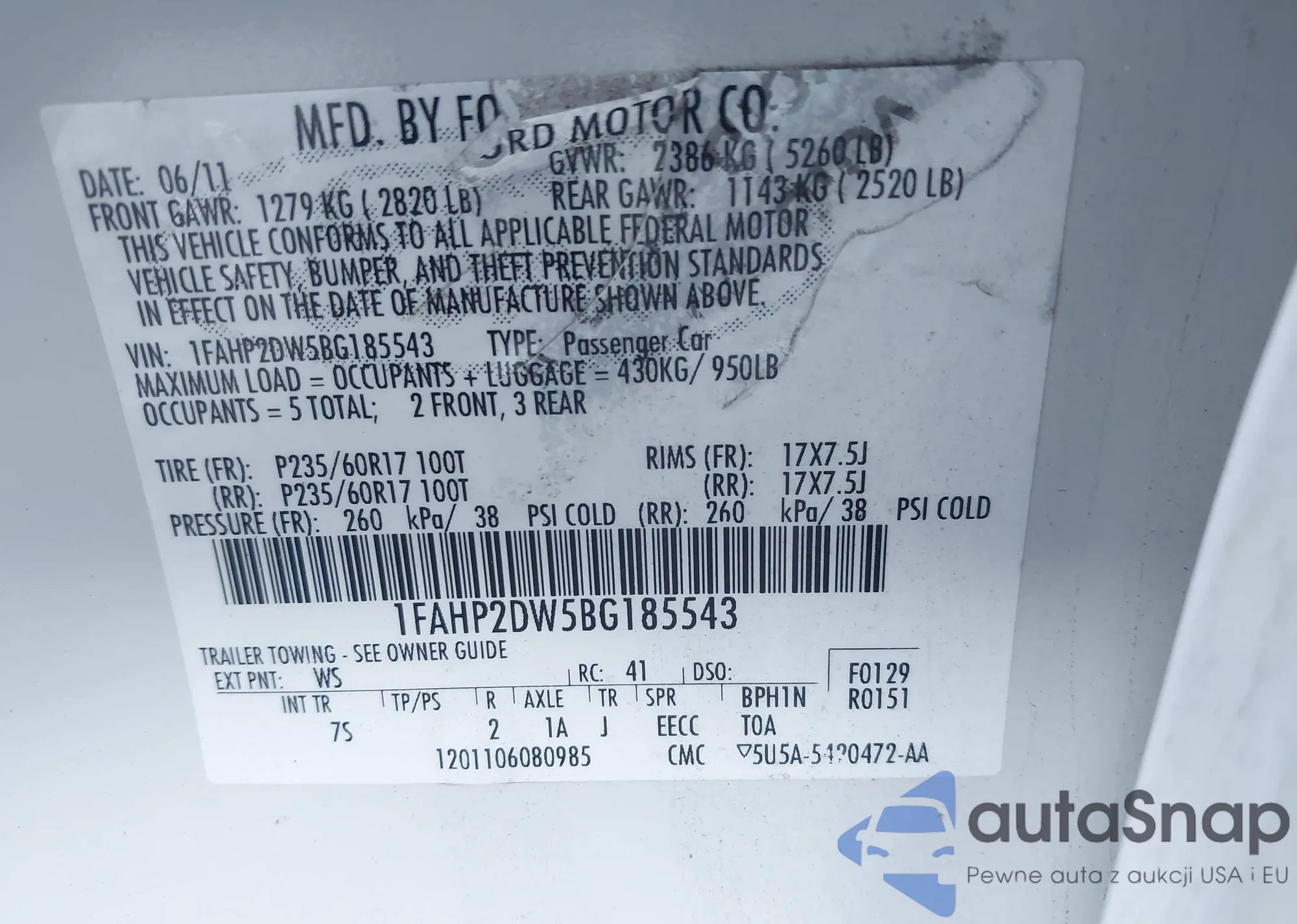 VIN: 1FAHP2DW5BG185543